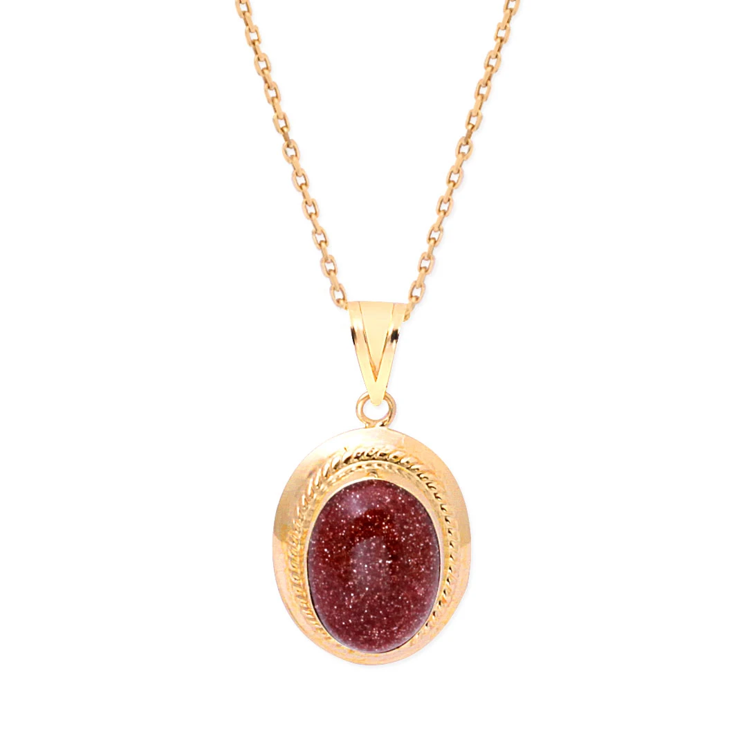 Kırmızı Oval Taşlı Altın Yüzük (YZK0111)