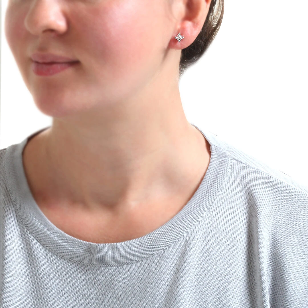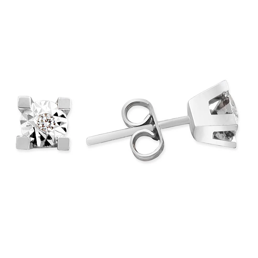 0.04 karat taş çevresi kalemli pul ile effect verilerek daha büyük bir taş görünümü verilen G-SI kesim pırlantayla taşlanmış el emeği, özel işçilik kalitesiyle tasarlanmış vidalı oldukça şık ve spor bir modele sahip 14 ayar beyaz altın pırlanta tektaş küpe.