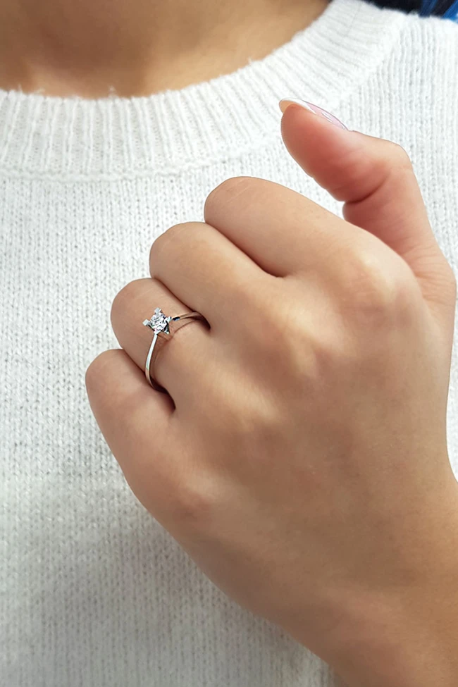 Sertifikalı 0.20 karat G-VSI kesim ve ışıl ışıl berrak taşıyla oldukça zarif duran bu şık tasarım pırlanta altın tektaş ile evlilik teklifi ettiğiniz en özel gününüzde ona kendini özel hissettirin!
