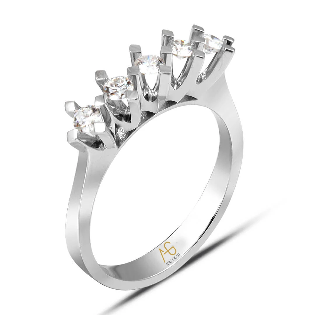 0.40 Karat G-VS renk ve kesime sahip 14 ayar beyaz altın 3.50 gram ağırlığında pırlanta beştaş yüzük. Alyans olarak da tek başına kullanılan beştaş yüzük modelleri, zarif şık ve ışıltılı bir tarzın kapılarını aralıyor. Gündelik ofis şıklığınızın tamamlayıcısı olacak beştaş yüzük modellerinden bu tasarım tam size göre. Parmakta oldukça rahat bir kullanıma sahiptir.