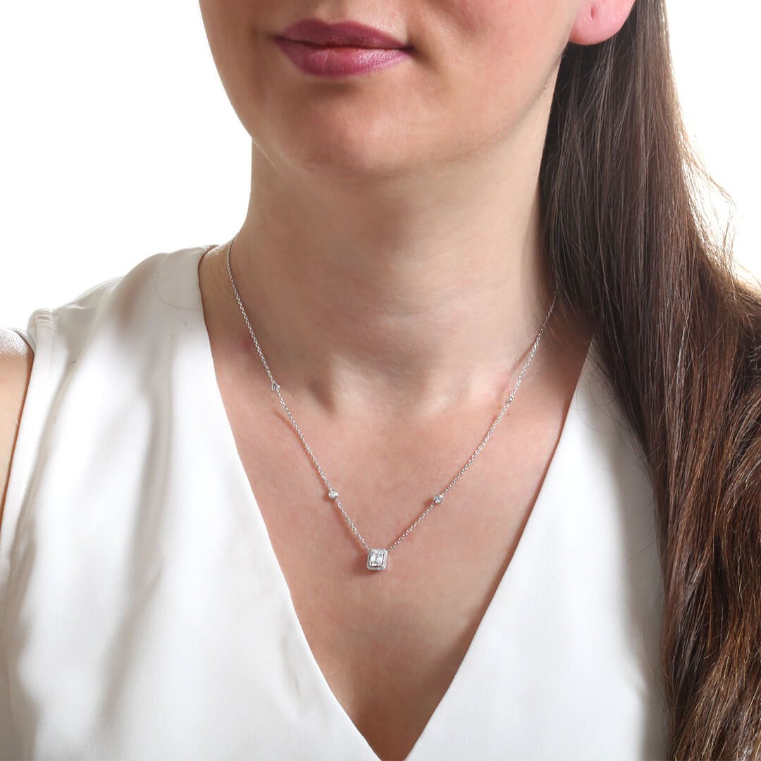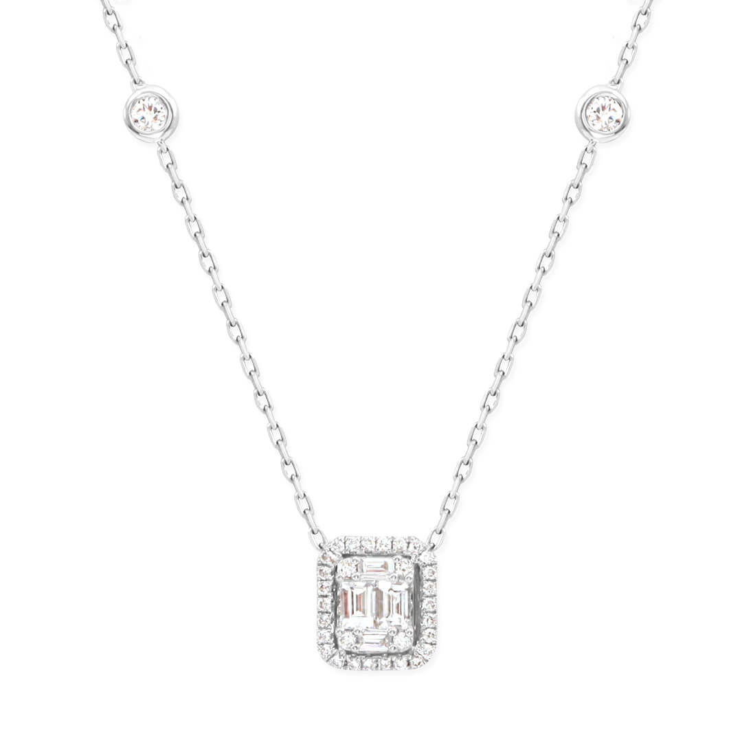 Yeni sezonun gözde modellerinden 14 ayar beyaz altın 0.41 ct. baget taşlı pırlanta kolyeyle ışıltınızı ve göz alıcı tasarımı ile enerjinizi yansıtın! Her zaman her an sizi ışığınla öne çıkaracak zarif bir detay..