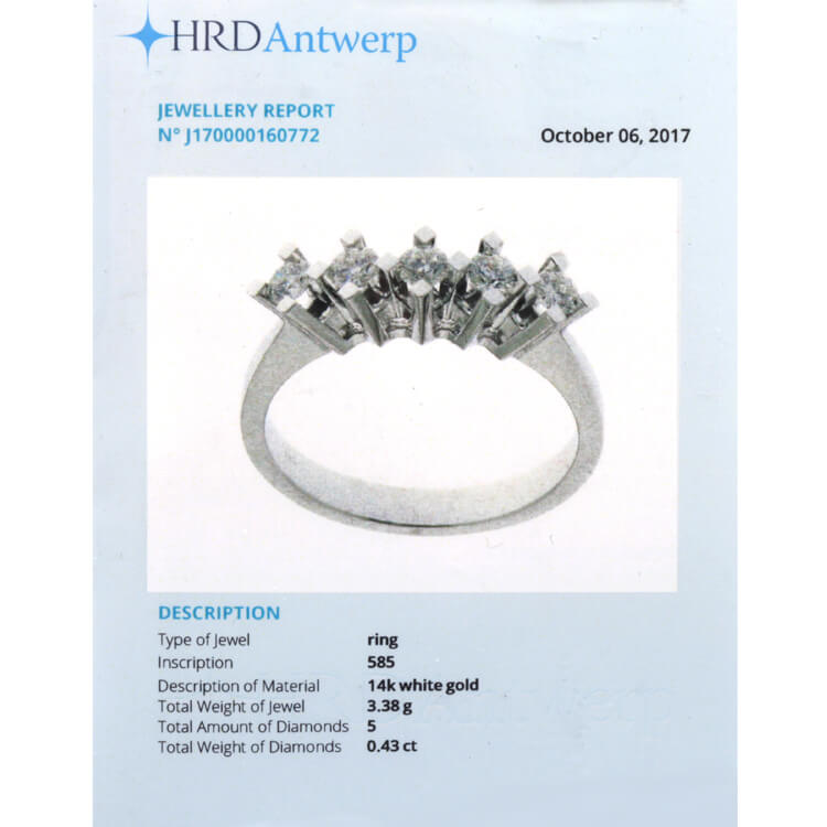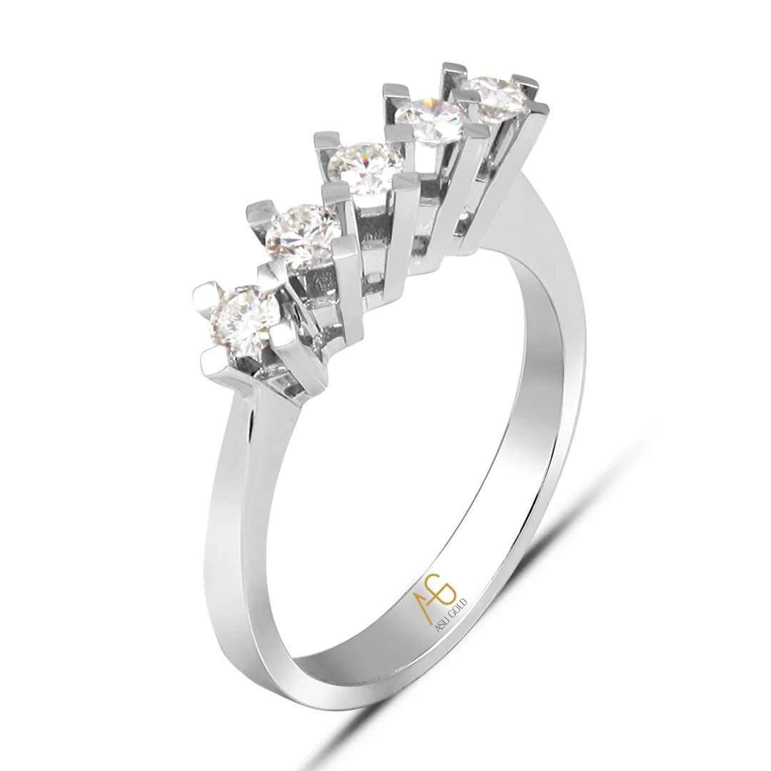 0.43 Ct. pırlanta beş taş G-SI kalite usta işçiliği ve göz alıcı ışıltısının yanında derin masanıyla aşk, sadakat, huzur, mutluluk ve bereketi temsil eden bu eşsiz tasarımlı altın pırlanta beştaş yüzük ile sevdiğinize anlamlı bir hediye verin.