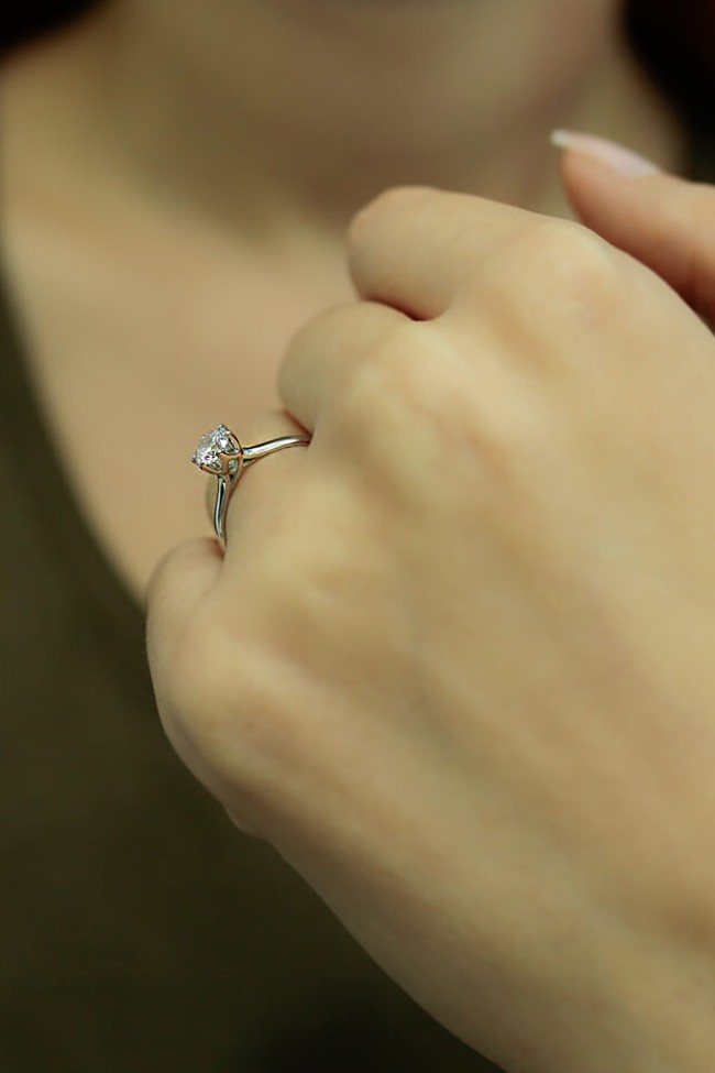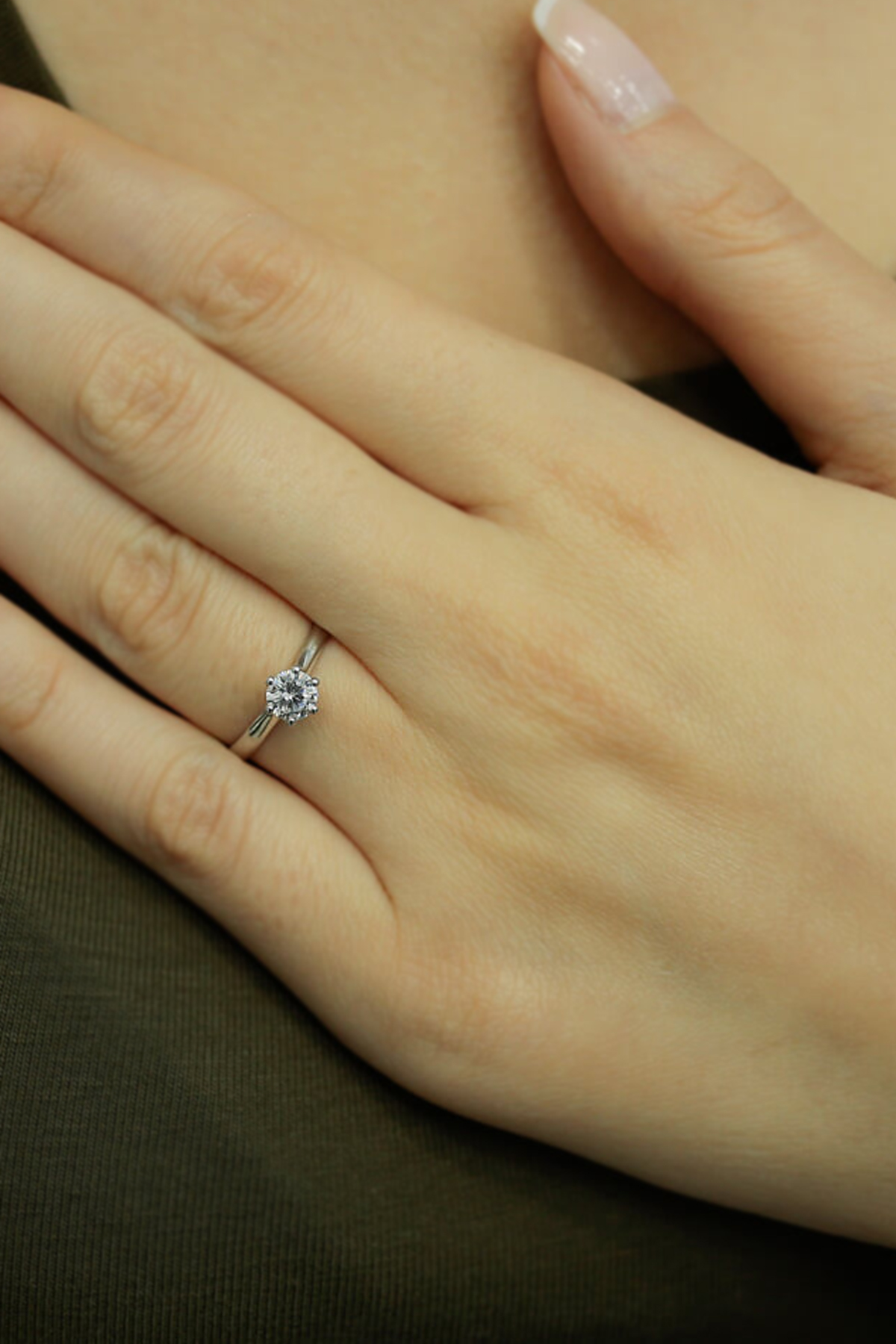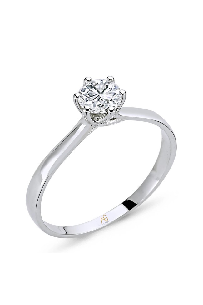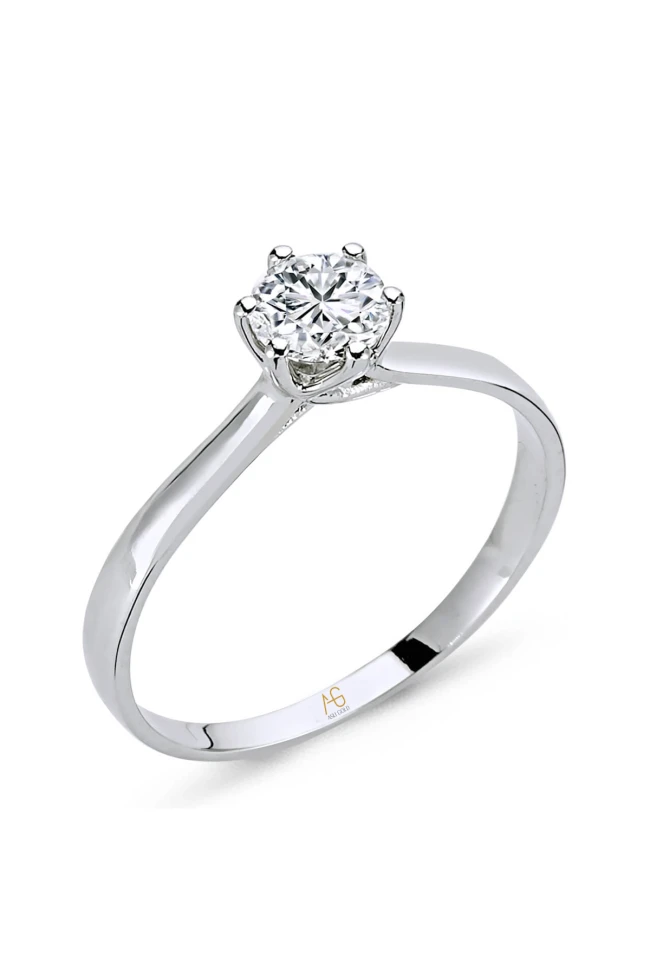 0.45 Ct. F/SI 6 tırnaklı zarif tasarımı ve ışıltısıyla büyüleyici zarif eller için ideal bir duruşa sahip HRD Sertifikalı pırlanta tektaş evlilik teklifi yüzüğü.