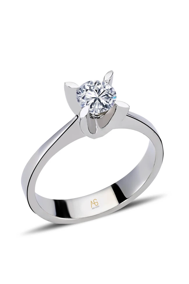 0.50 Ct. F/SI klasik "V" tırnaklı zarif tasarımı ve ışıltısıyla büyüleyici zarif eller için ideal bir duruşa sahip HRD Sertifikalı pırlanta tektaş alyans.