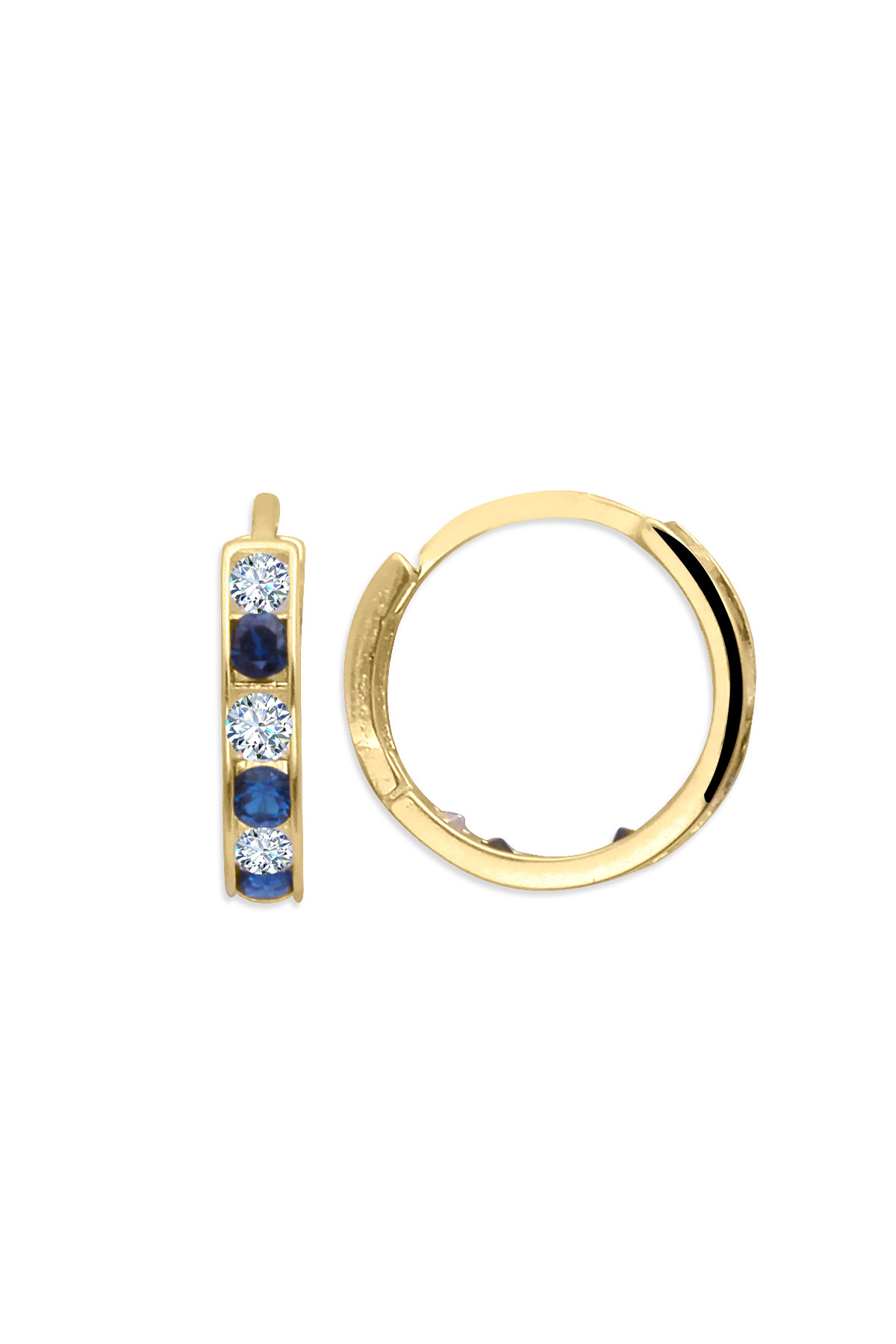 1 Cm boyunda lacivert beyaz zirkon taşlı halka model günlük olarak kullanıma uygun 14 ayar 1.10 gr ağırlığında altın "C" klips çocuk küpesi.