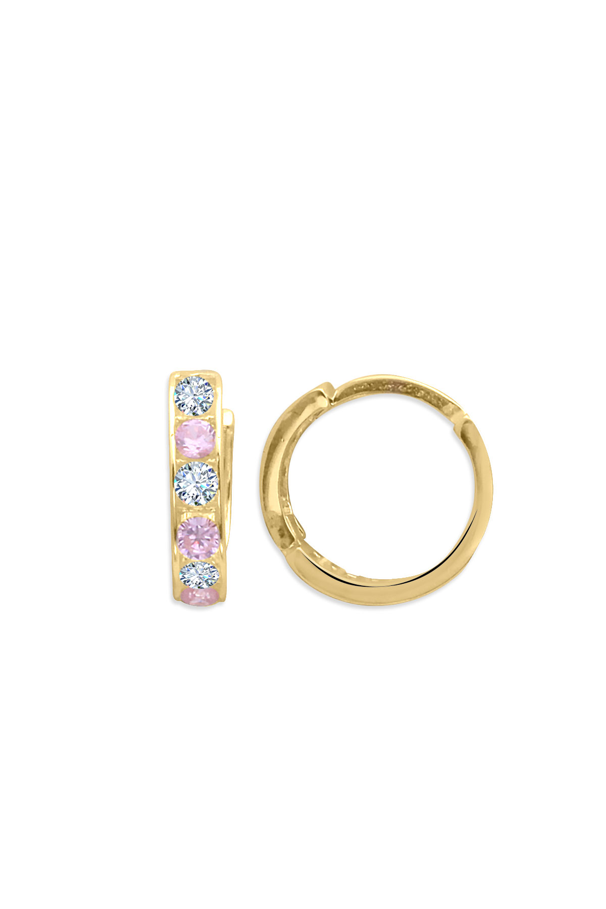 1 Cm boyunda pembe beyaz zirkon taşlı halka model günlük olarak kullanıma uygun 14 ayar 1.10 gr ağırlığında altın "C" klips bebek küpesi.