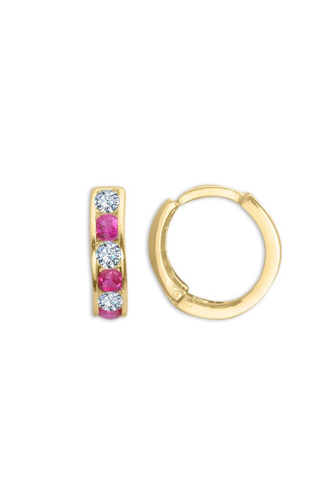 1 Cm boyunda pembe beyaz zirkon taşlı halka model günlük olarak kullanıma uygun 14 ayar 1.10 gr ağırlığında altın "C" klips çocuk küpesi.