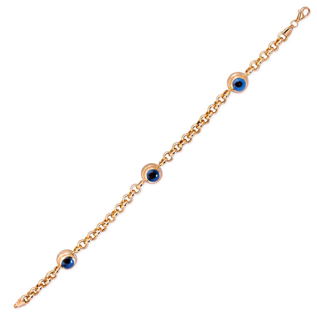 14 ayar altın orta boy nazar boncuklu bileklik modeli modası hiç geçmeyen, eskimeyen hem spor hem fantazi tarzınıza hitap edebilecek şık ve modern bir tasarımdır. Model boyutu 21 cm olup 7.90 gram ağırlığındadır. *Ürünlerimiz faturalıdır güvenle satın alabilirsiniz, özel hediye kutusunda ücretsiz kargo ile gönderilecektir