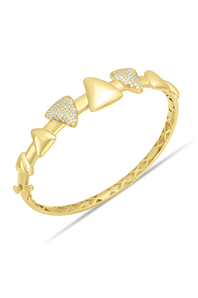 14 Ayar şık estetik modeliyle oldukça zarif ve aynı zamanda havalı duruşa sahip 10.80 gram ağırlığında zirkon taş detaylı italyan üçgen model altın kadın bilezik.