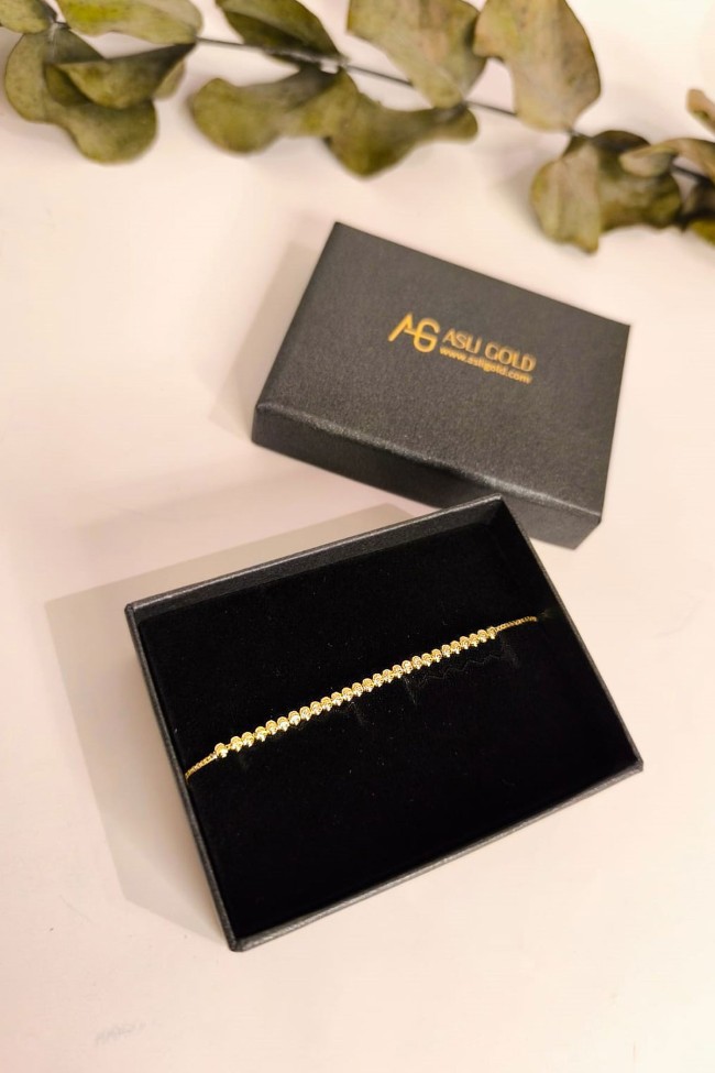 14 Ayar sarı altın asansörlü spor bileklik. Şık ve günlük kullanıma uygun bu modeli dilerseniz saatlerinizle dilerseniz farklı bileklik tasarımlarınızla bir arada kullanabilirsiniz.