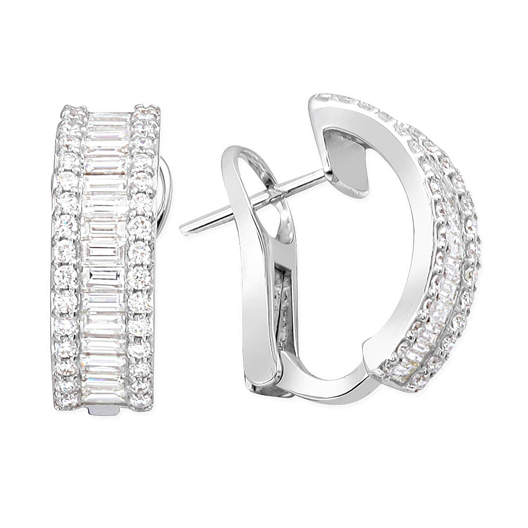 1.45 karat baget ve yuvarlak G-VS2 kesim pırlantalarla kombine taşlanmış el emeği, özel işçilik kalitesiyle tasarlanmış klipsli oldukça şık ve elit bir modele sahip pırlanta 18 ayar beyaz altın baget küpe.