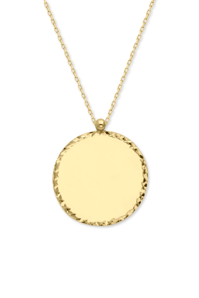 1.5 Cm boyutunda kenar kısmı kalem işlemeli yuvarlak plaka kolye ile ışıltınıza ve günlük stilinize renk katacak, farklı kolyelerinizle kombin olarak kullanmaya bayılacaksınız.