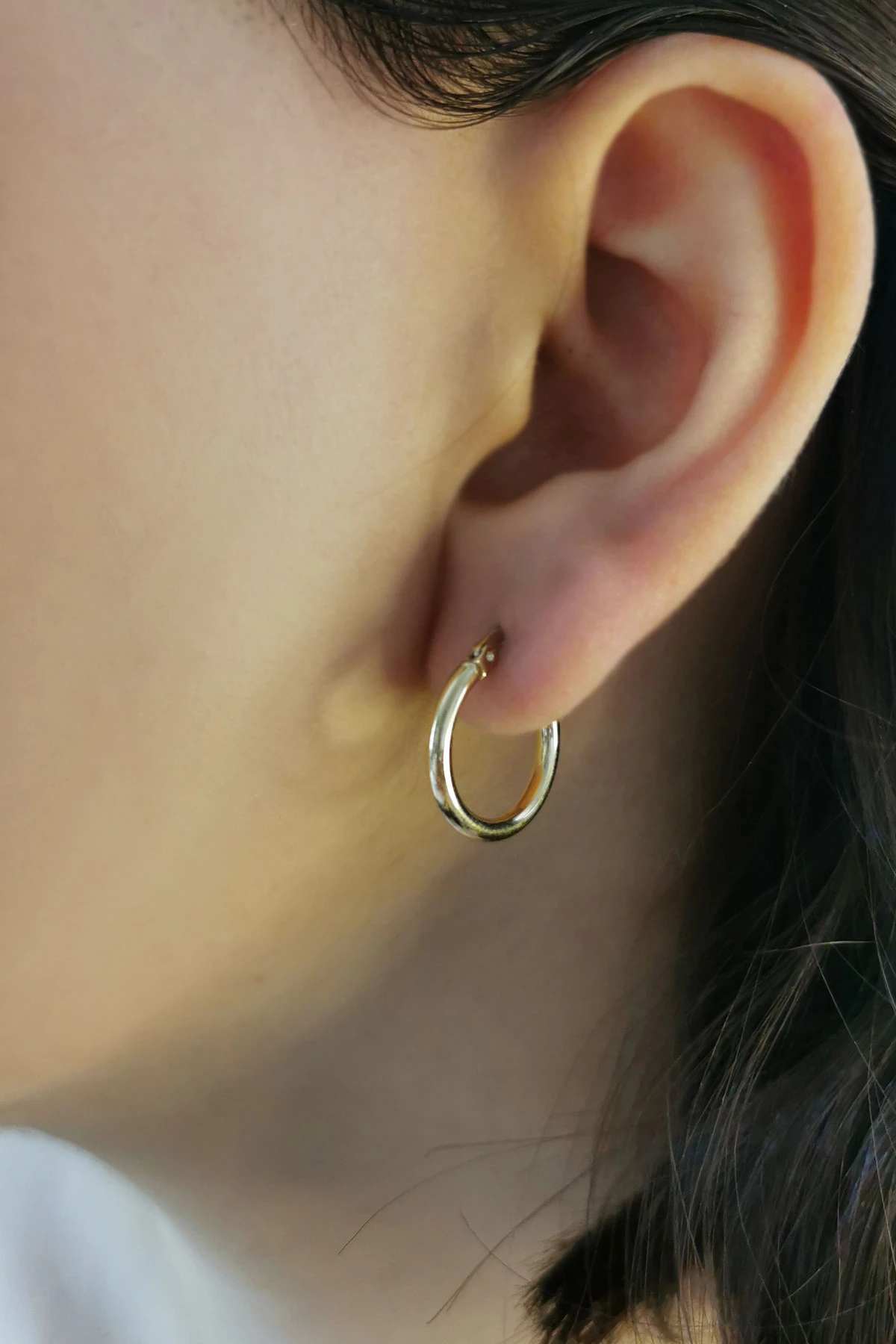 Mini Boy Tasarımıyla 2. yada 3. Kulak Deliği Küpesi Olarak da Kullanıma Uygun 1.5 Gram Ağırlığında 1.5 Cm Boyunda Işıltılı 14 Ayar Altın Düz Bombe Halka Küpe.