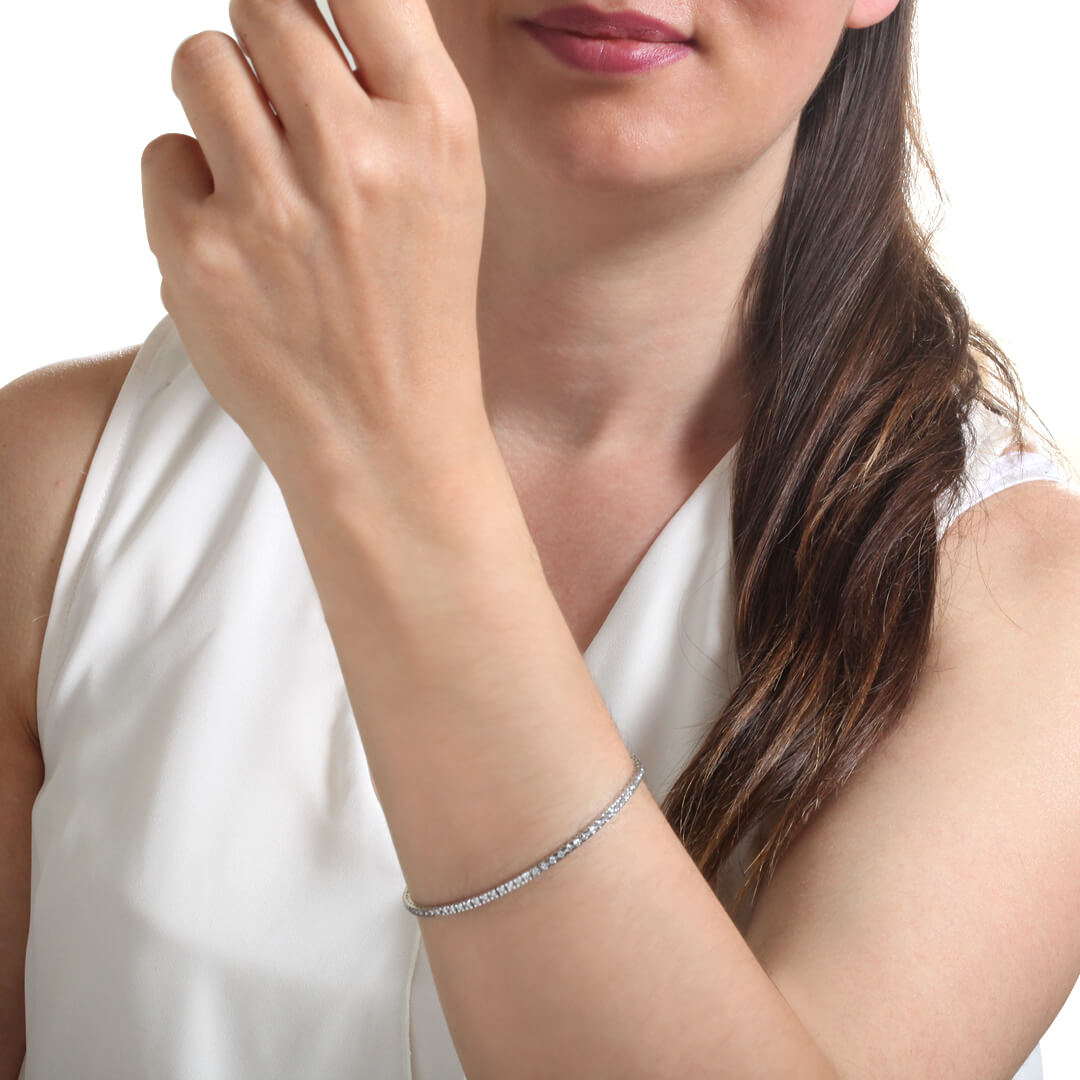 Sade ve zarif 14 ayar beyaz altın 1.76. H/VS kalite taşlarıyla ışıltısına her zaman hayran bırakan günlük olarak da kullanabileceğiniz su yolu pırlanta bileklik.