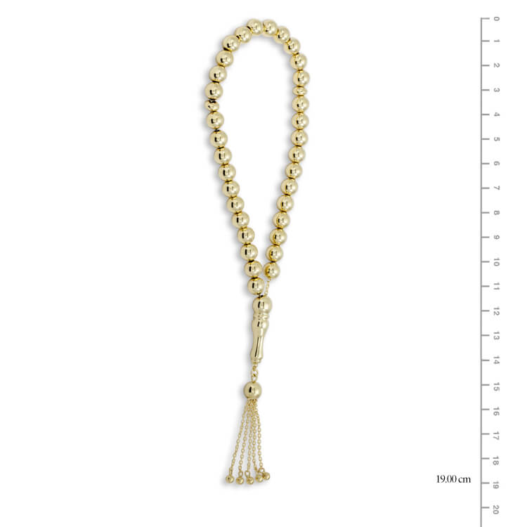 19 Cm uzunluğundaki ışıl ışıl altın düz yuvarlak toplu tespih modeli ile prestijli beylerin severek kullanacakları harika bir hediye alternatifini sizlere sunuyoruz.