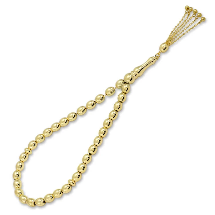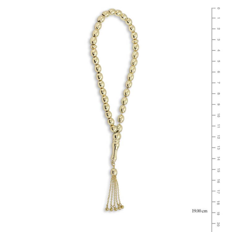 19 Cm uzunluğundaki ışıl ışıl altın oval düz toplu tespih modeli ile prestijli beylerin severek kullanacakları harika bir hediye alternatifini sizlere sunuyoruz.