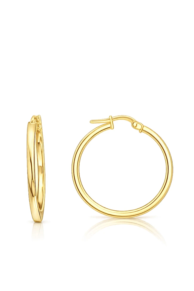 Bazen şıklık en sade formda saklıdır… 2 cm ölçüsündeki bu ince bombeli halka küpe, abartıya kaçmadan dikkat çekmeyi bilenler için tasarlandı. Yumuşak bombeli formu ışığı nazikçe yansıtırken, her açıdan dengeli bir parlaklık sunar. Ne çok büyük ne de silik; tam kararında ölçüsüyle yüz hatlarını zarifçe ön plana çıkarır.