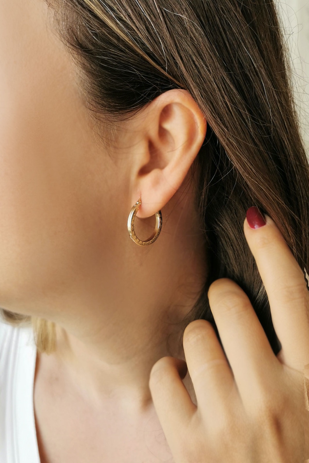 Grek Desen Tasarım 2.20 Gram Ağırlığında 2 Cm Boyunda 14 Ayar Altın Yuvarlak Yeni Model Halka Küpe.