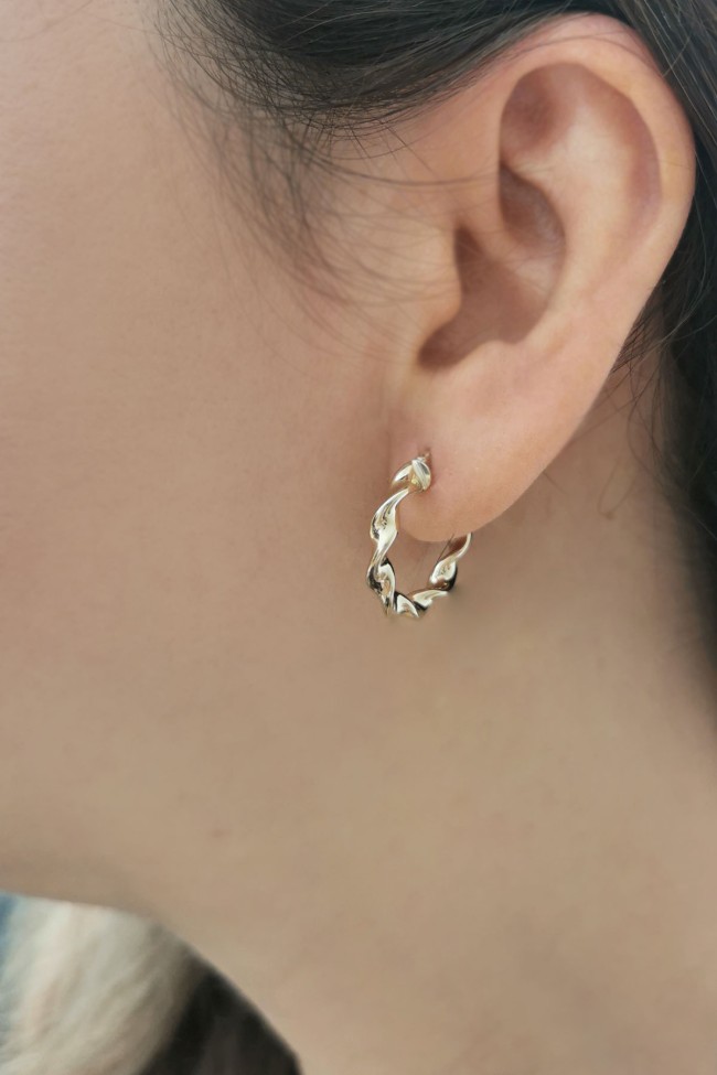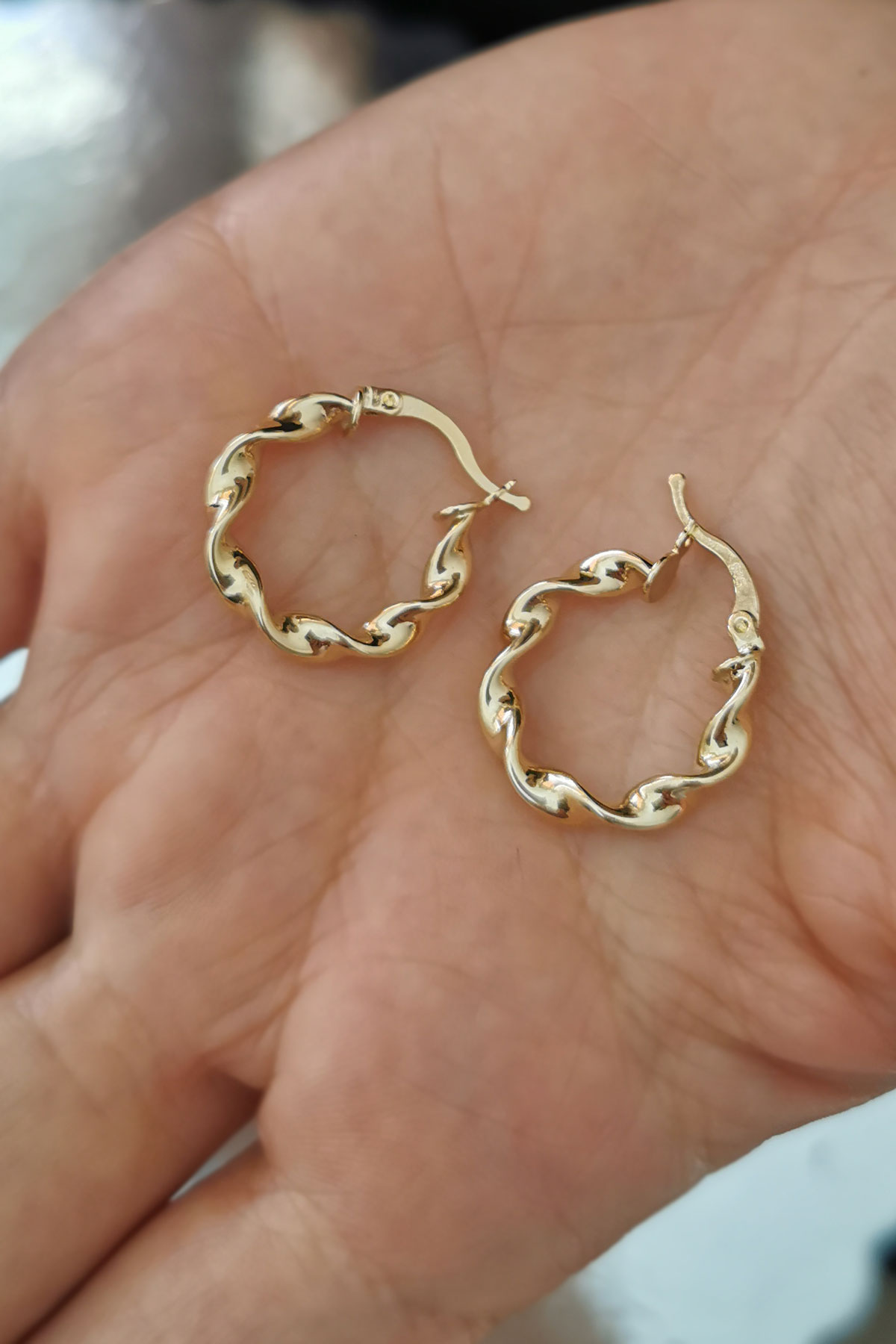 Modern Havalı Duruşuyla Rahat Kullanıma Sahip 2.15 Gram Ağırlığında 2 Cm Boyunda 14 Ayar Altın Yeni Model Kurdela Burgu Parlak Halka Küpe.