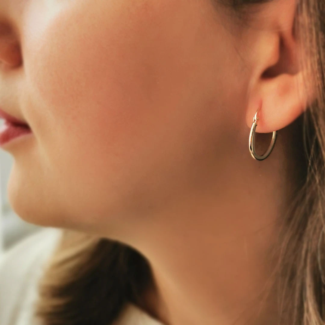 Spor Ve Şık Bir Tasarıma Sahip 1.50 Gram Ağırlığında 2 Cm Boyunda Işıltılı 14 Ayar Altın Halka Küpe. Günlük kullanıma uygundur, 2.3 kulak deliği küpesi olarak da tüm giyim tarzınıza muhteşem uyum sağlar.