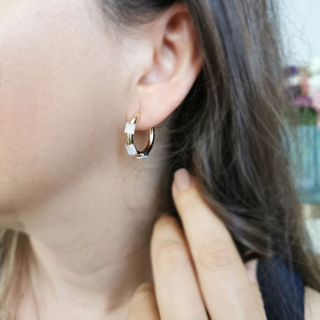 14 Ayar sarı altın her sezonun modası olan ışıl ışıl duruşa sahip taşlı parça detaylı günlük kullanıma uygun 4,6 gram ağırlığında 2 Cm boyunda altın halka küpe.