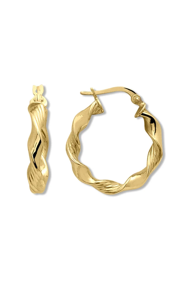 Spor Ve Şık Bir Tasarıma Sahip 2.05 Gram Ağırlığında 2.2 Cm Boyunda Burgu Detaylı 14 Ayar Altın Halka Küpe.