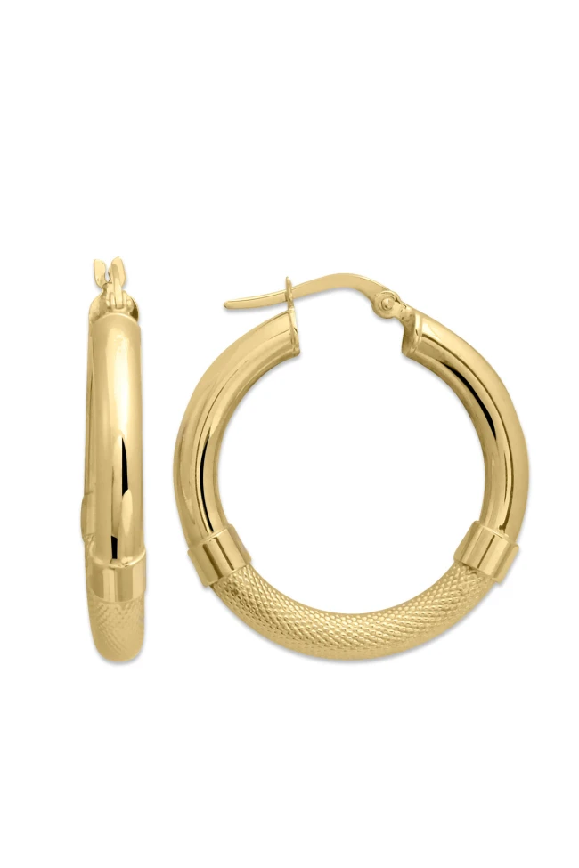 Kullanışlı İdeal Fantazi İşlemeli Tasarımıyla Göz Alıcı 3.45 Gram Ağırlığında 2.5 Cm Boyunda 14 Ayar Altın Halka Küpe.