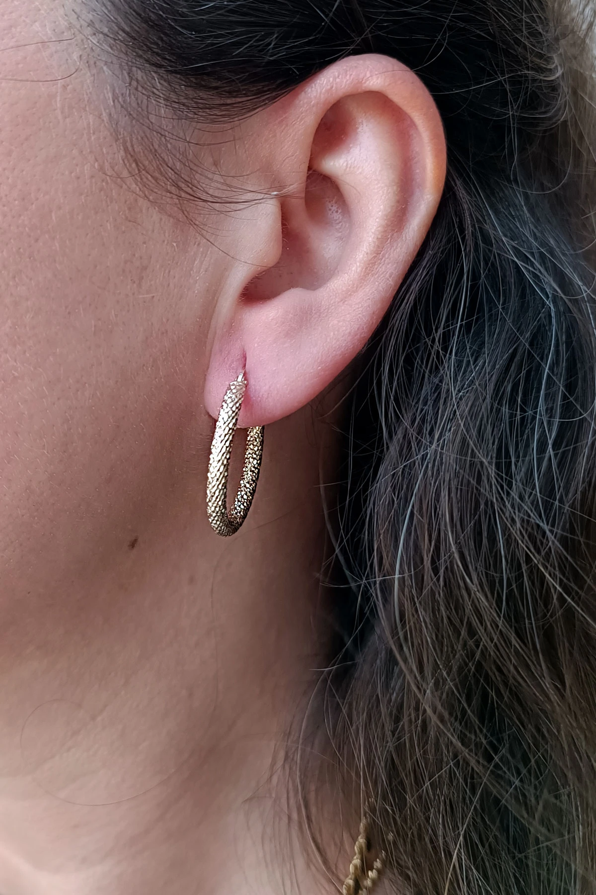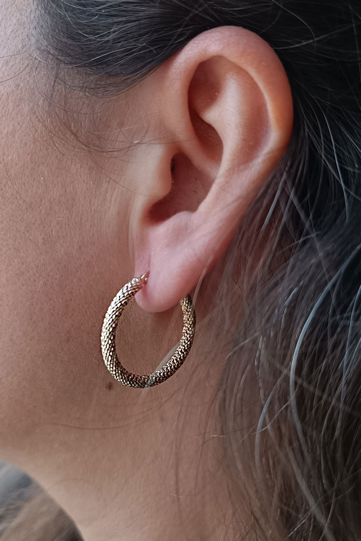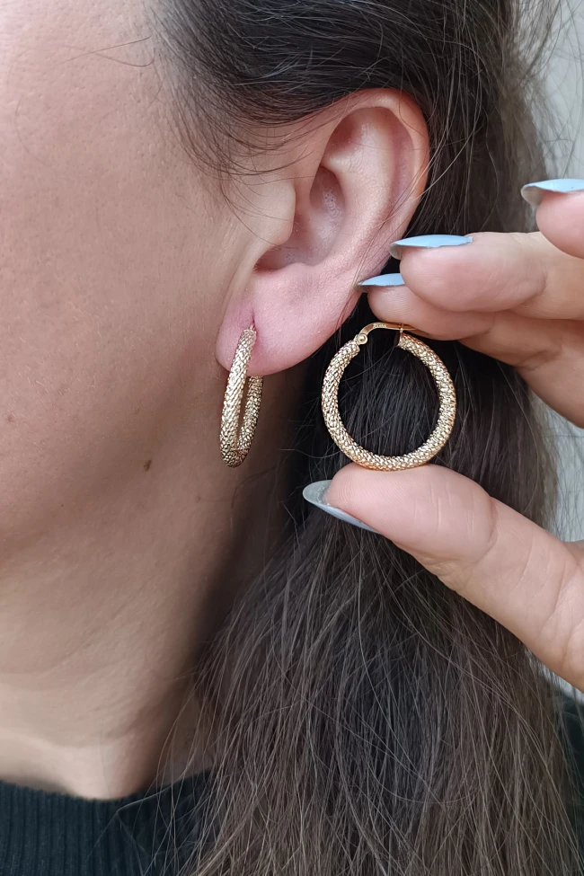 Işıltılı Bir Tasarıma Sahip 2.25 Gram Ağırlığında 2.5 Cm Boyunda Işıltılı 14 Ayar Altın Halka Küpe.