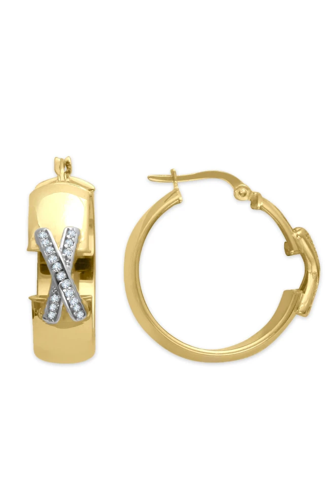 İdeal Boy Tasarımıyla Göz Alıcı 5.20 Gram Ağırlığında 2.5 Cm Boyunda 14 Ayar Altın Çapraz Taşlı Halka Küpe.