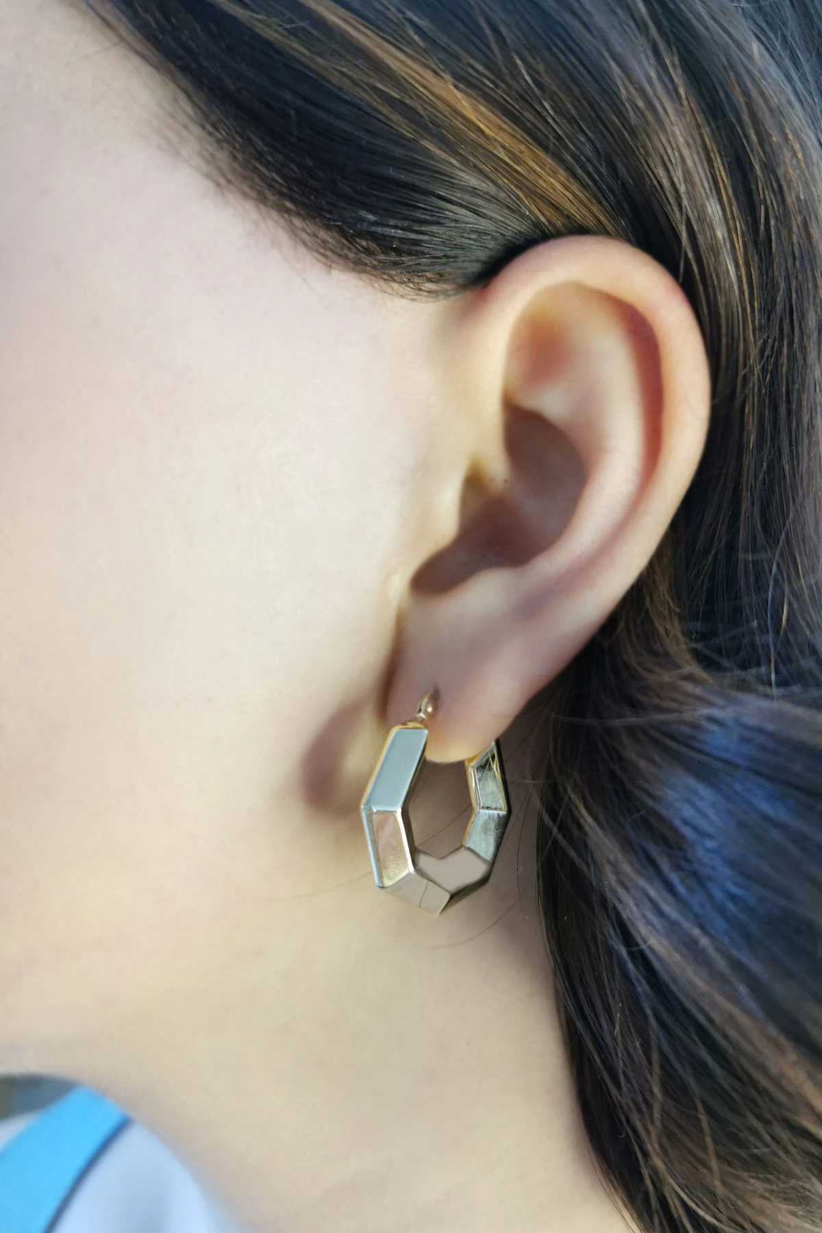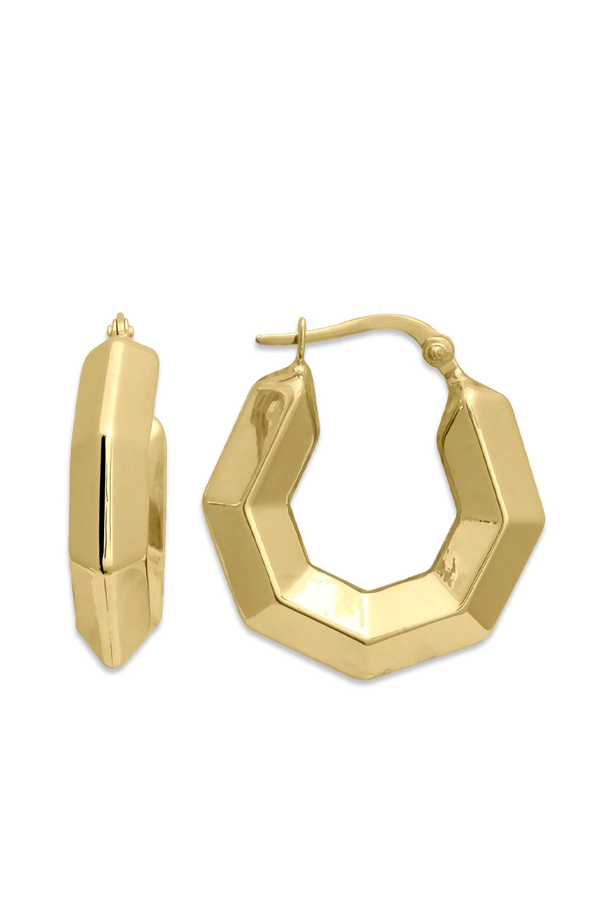 Şık Ve Trend Tasarımıyla Göz Alıcı 2.50 Gram Ağırlığında 2.5 Cm Boyunda Işıltılı 14 Ayar Altın Köşeli Halka Küpe.