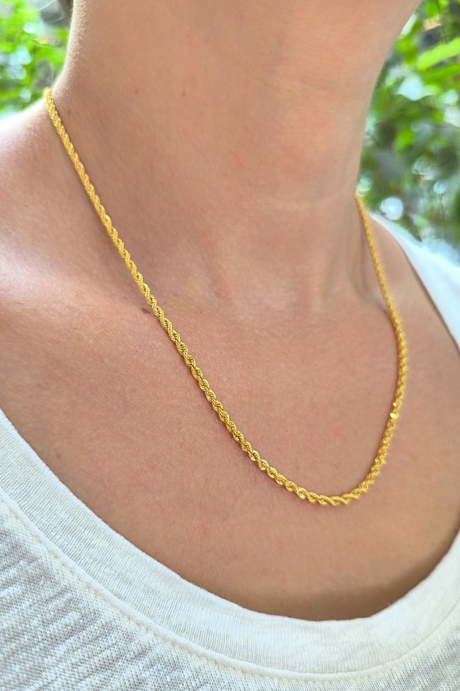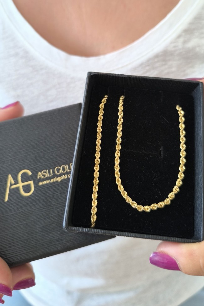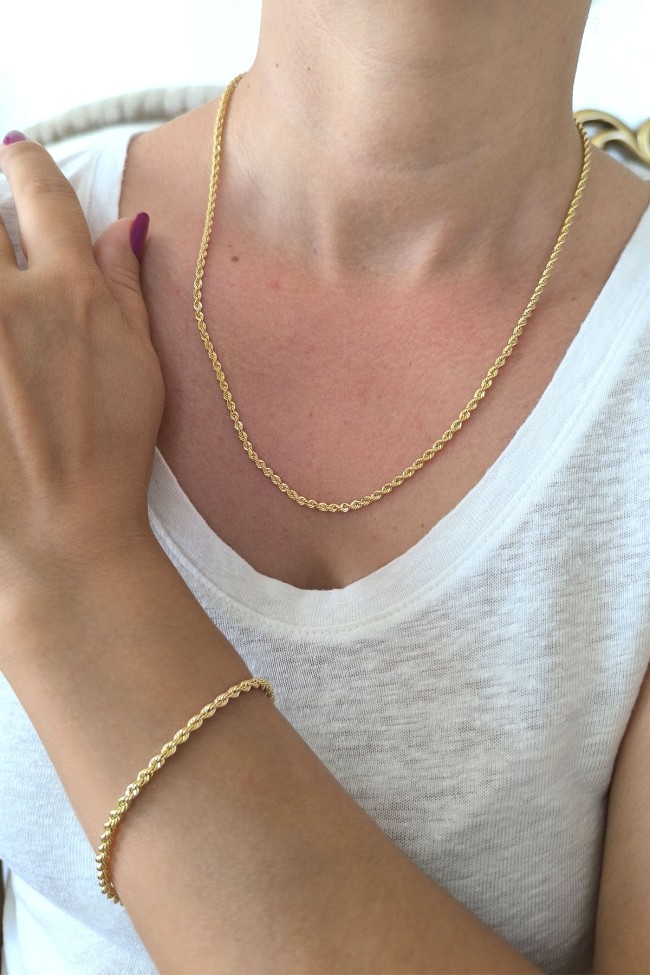 6.70 Gram ağırlığında 55 cm kolyesi ve 19.5 cm bilekliği ile sezona yeniden damga vuran halat zincir modelimiz şık ve sağlam duruşu ile tüm kolye uçlarınızla uyum sağlayacak. Günlük kullanımda severek tercih edeceksiniz, tek başına kombin olarak da kullanabilirsiniz.
