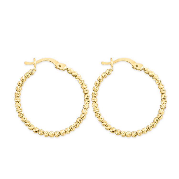 2.8 Cm Çapında Günlük Kullanımda Sade Duruşuyla Tarzınıza Işıltı Katacak Sarı Altın Kalemli Toplarla Tasarlanmış Tek Sıra 14 Ayar Altın Halka Küpe.