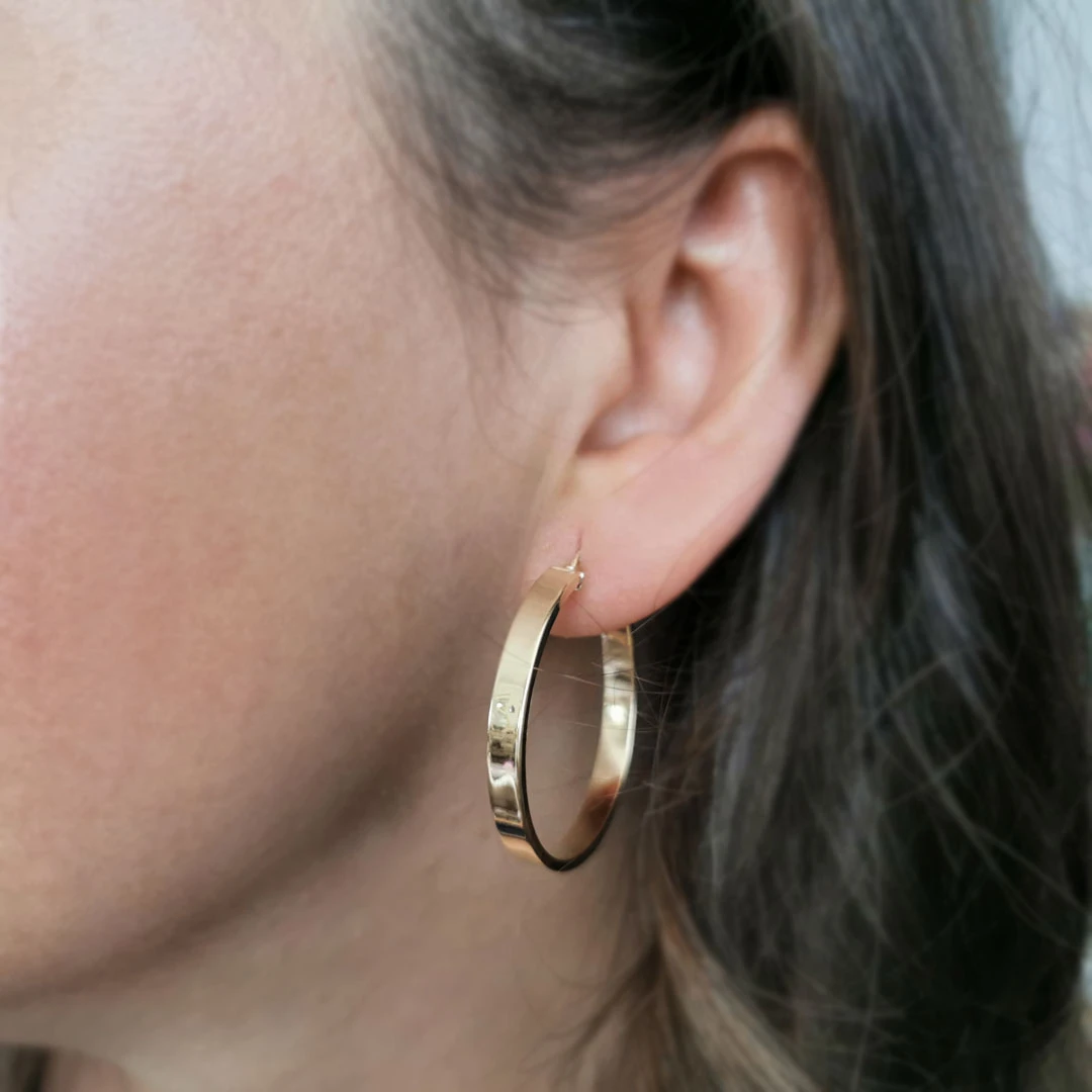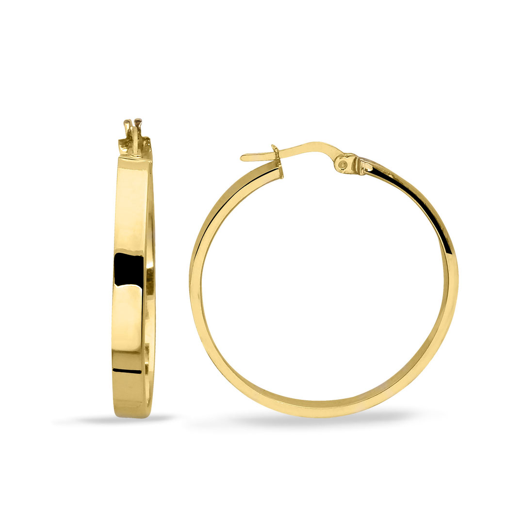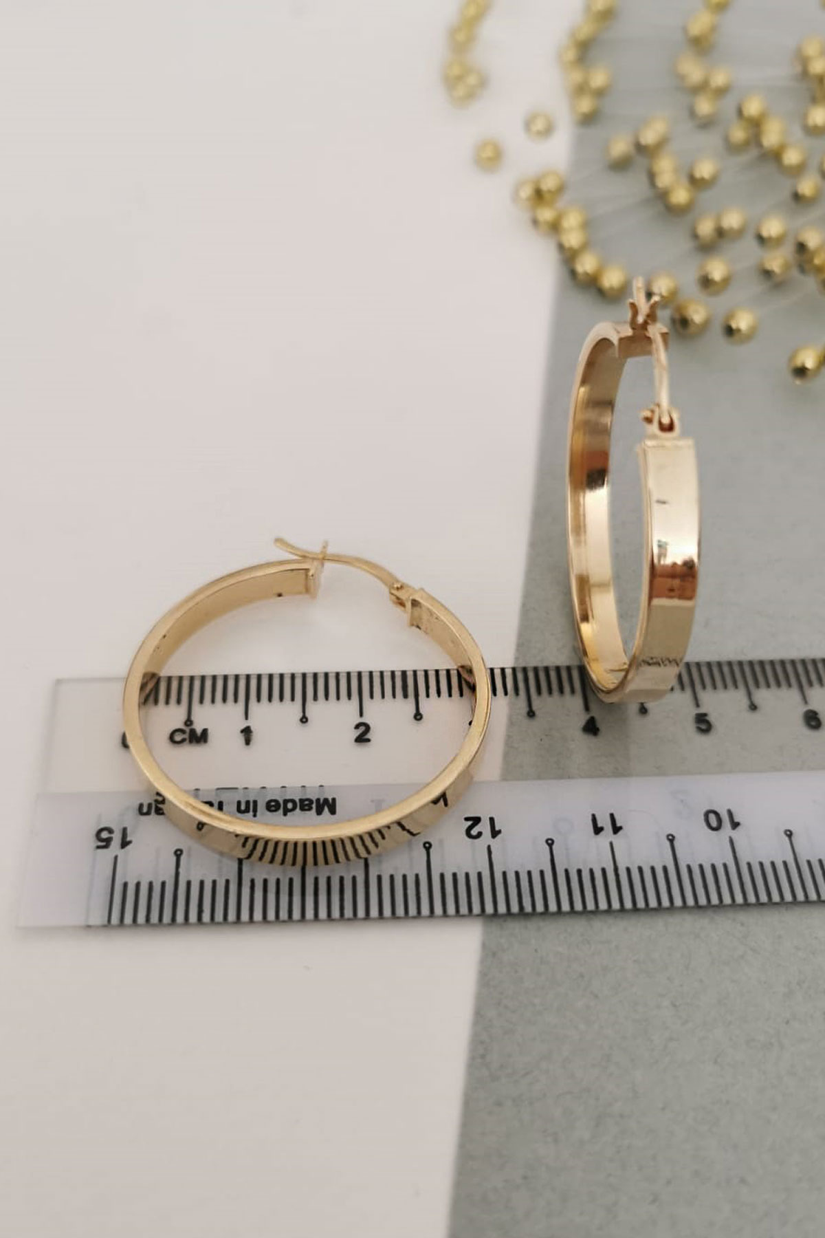 14 Ayar sarı altın her sezon moda olan ışıl ışıl duruşa sahip düz burgu detaylı günlük kullanıma uygun 3.75 gram ağırlığında 3 Cm boyunda altın halka küpe.