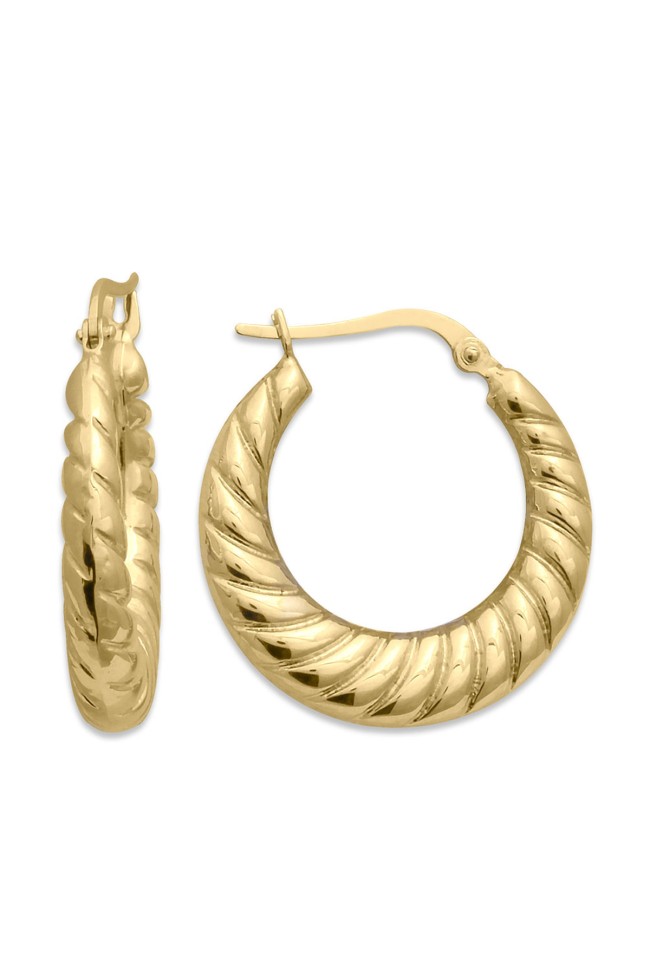 Şık Ve Trend Tasarımıyla Göz Alıcı 2.35 Gram Ağırlığında 3 Cm Boyunda Işıltılı 14 Ayar Altın İstiridye Halka Küpe.