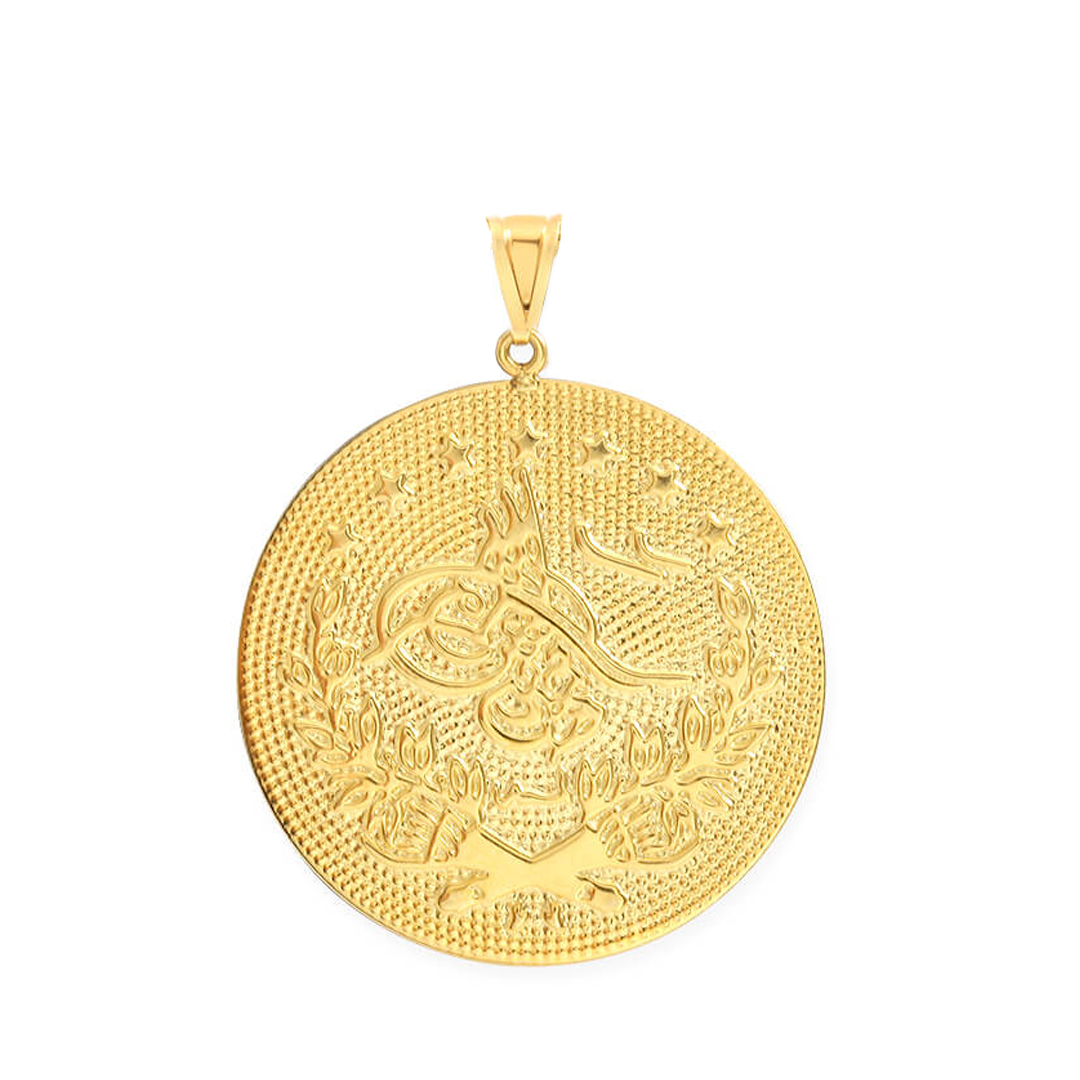 Sezonun trend modası olan altın tuğra kolyeler, düğün, nişan, doğum, yıl dönümü ve doğum günü hediyesi olarak çokça tercih edilen armağan seçeneklerinden. Model boyutu tepelikten uca 3 cm olup zincirsiz olarak satışa sunulmuştur, 2.50 gram ağırlığındadır.