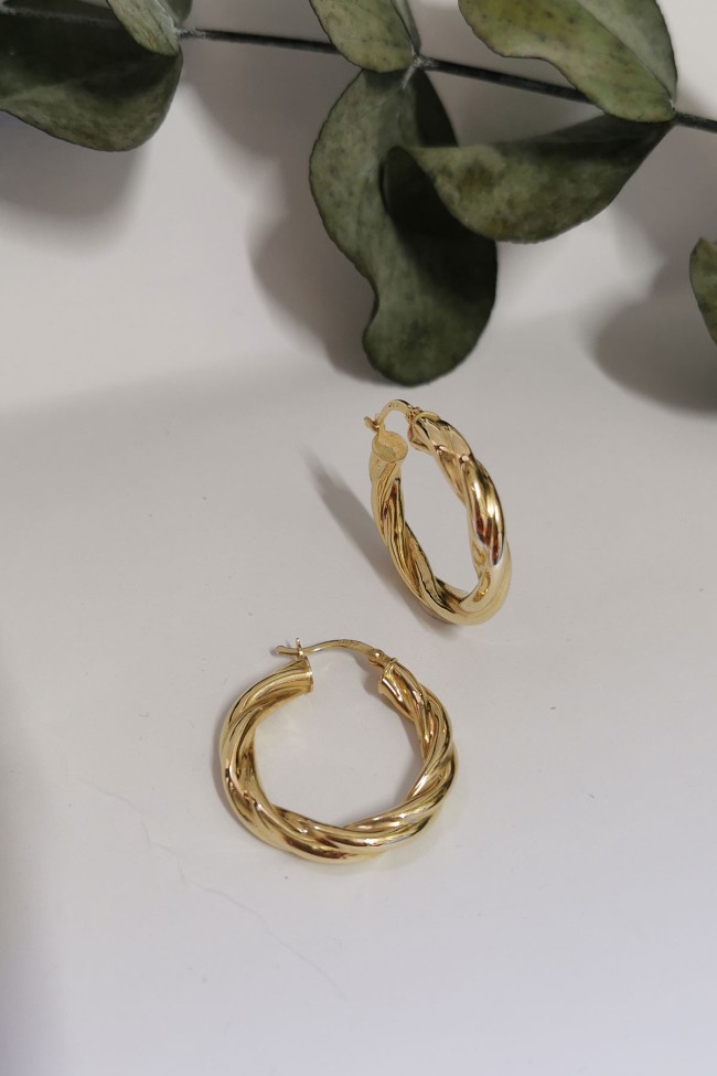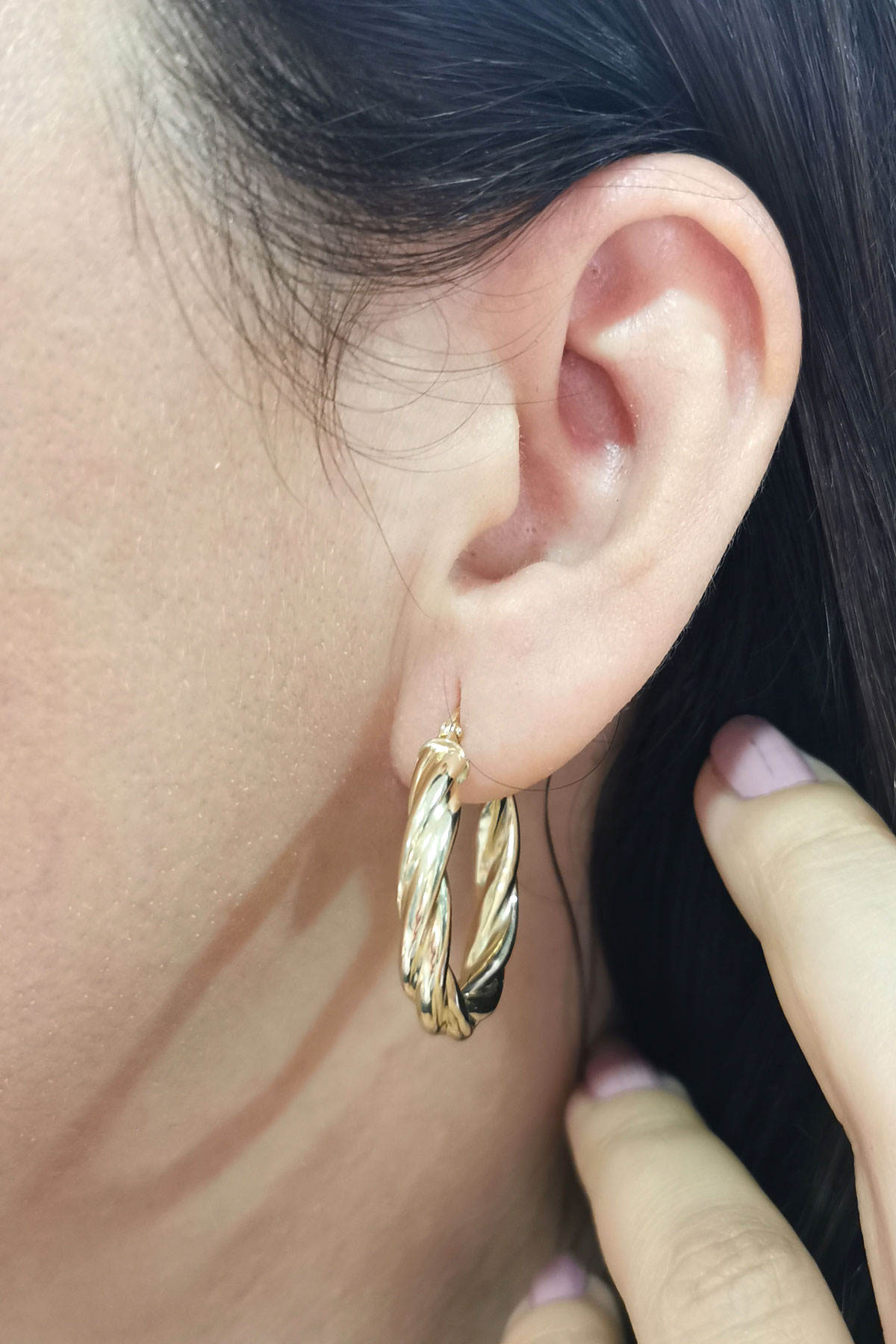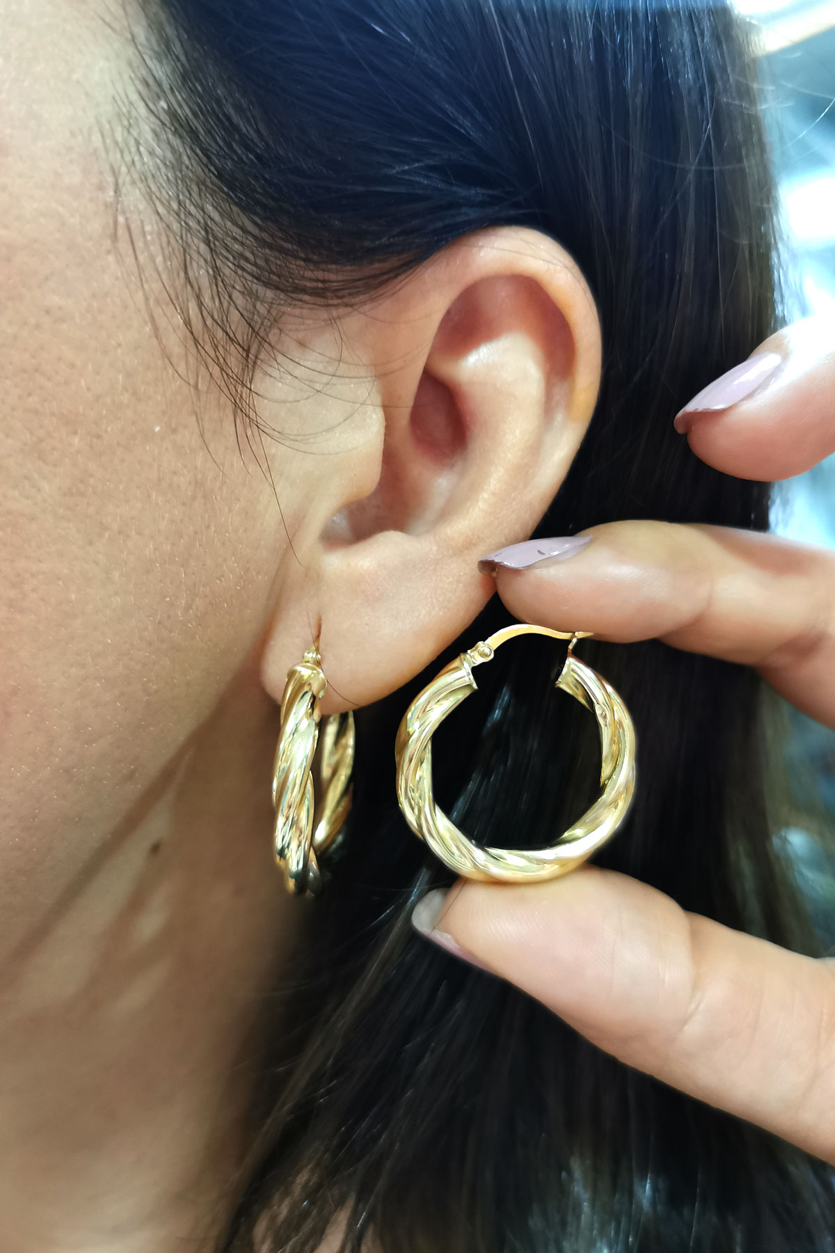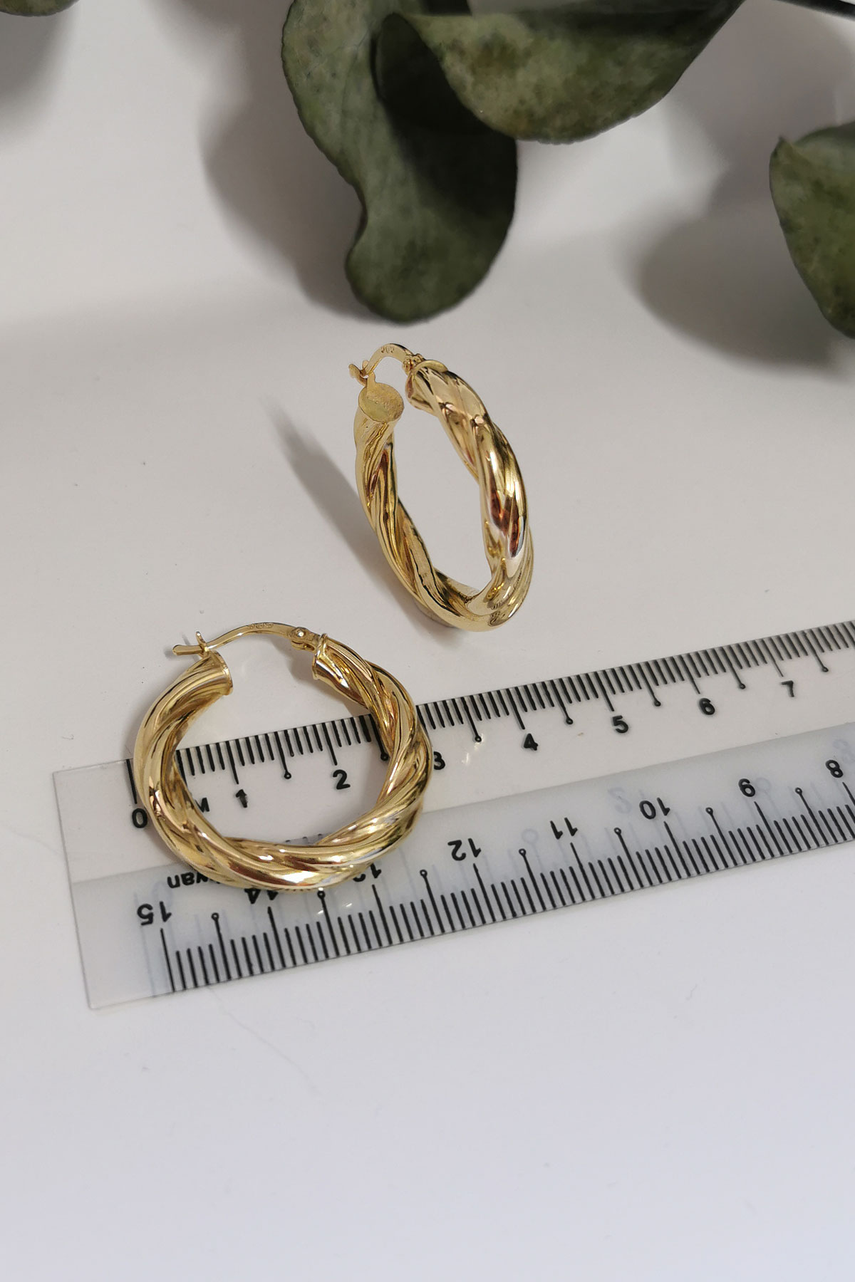 4.50 Gram Ağırlığında 14 Ayar Altın Spor ve Günlük Kullanıma Uygun Sezonun Trend Modası Burgu Model 3 Cm Halka Küpe.