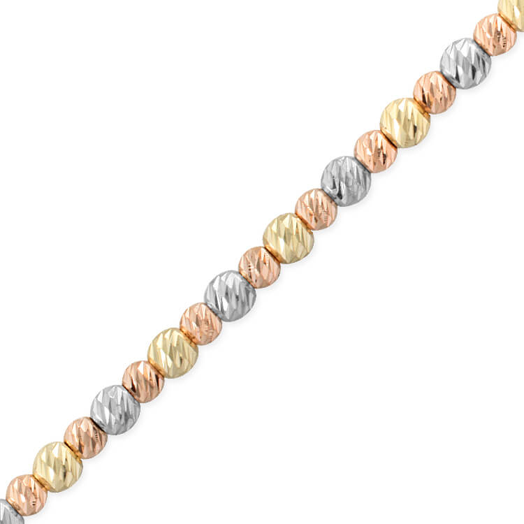 14 Ayar altın 4.05 gram ağırlığında şık ve gündelik kullanıma uygun 3 renkli altın toplu tasarım tek sıra 19.5 cm dorika bileklik.