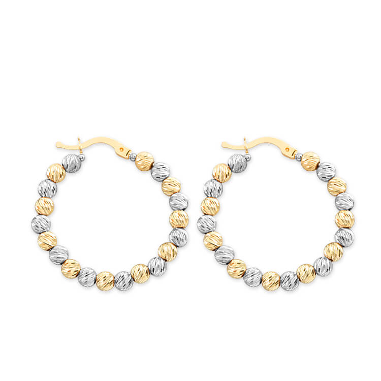 3.2 Cm Çapında Günlük Kullanımda Sade Duruşuyla Tarzınıza Işıltı Katacak Altın Kalemli Toplarla Tasarlanmış Tek Sıra 14 Ayar Altın Halka Küpe.