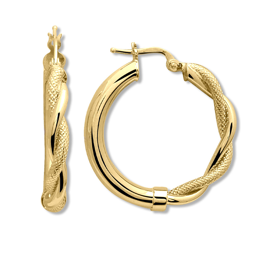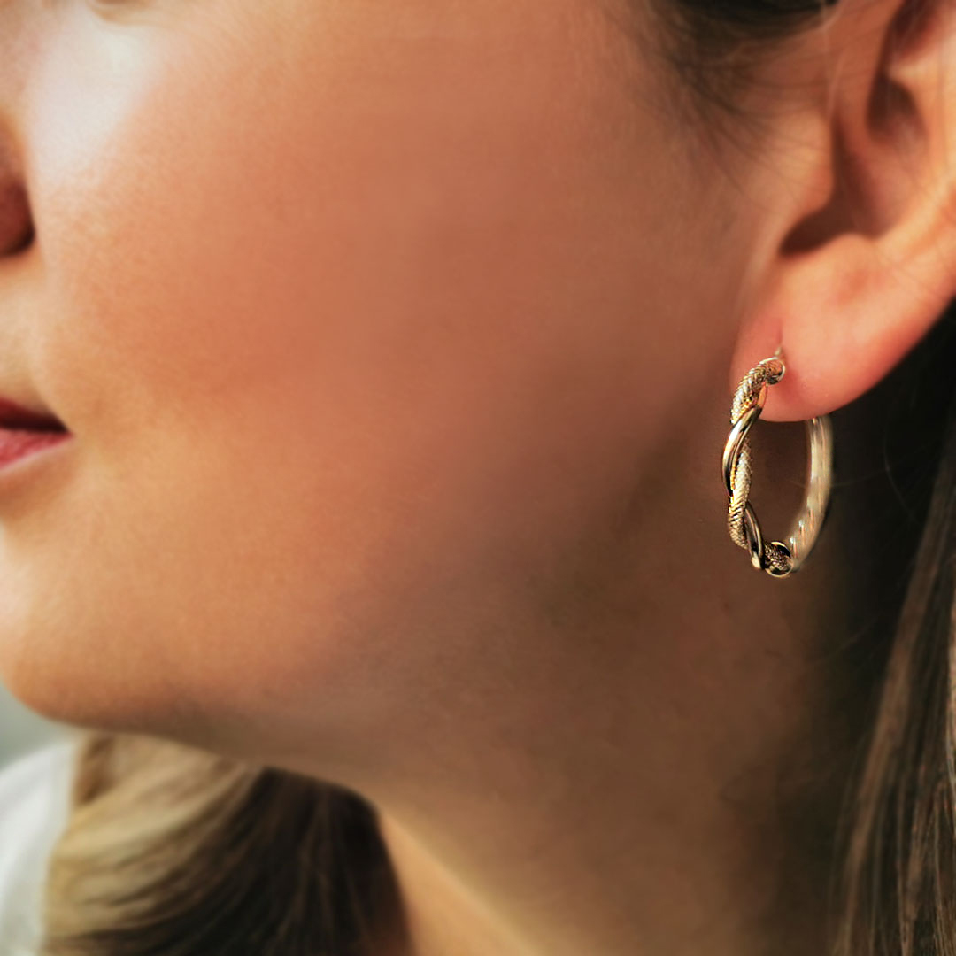 Çekici Ve Hoş Bir Tasarıma Sahip 3.75 Gram Ağırlığında 3.2 Cm Boyunda Yarım Burgu Detaylı 14 Ayar Altın Halka Küpe.