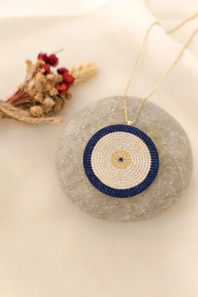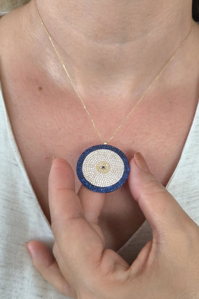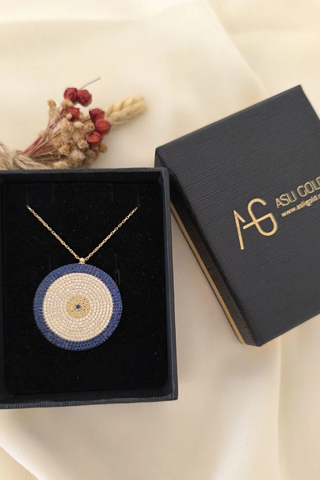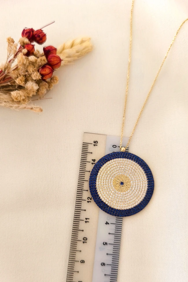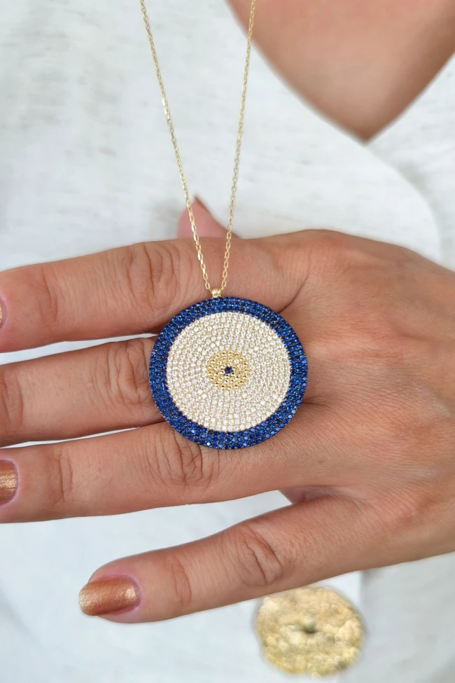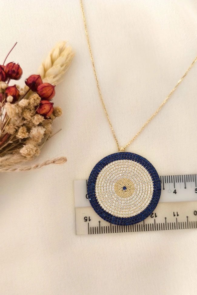 Gösterişli Şık Modeliyle 3.5 Cm Boyunda 9.00 Gr. Ağırlığında 14 Ayar Büyük Dev Boy Altın Nazar Boncuğu Kolye.