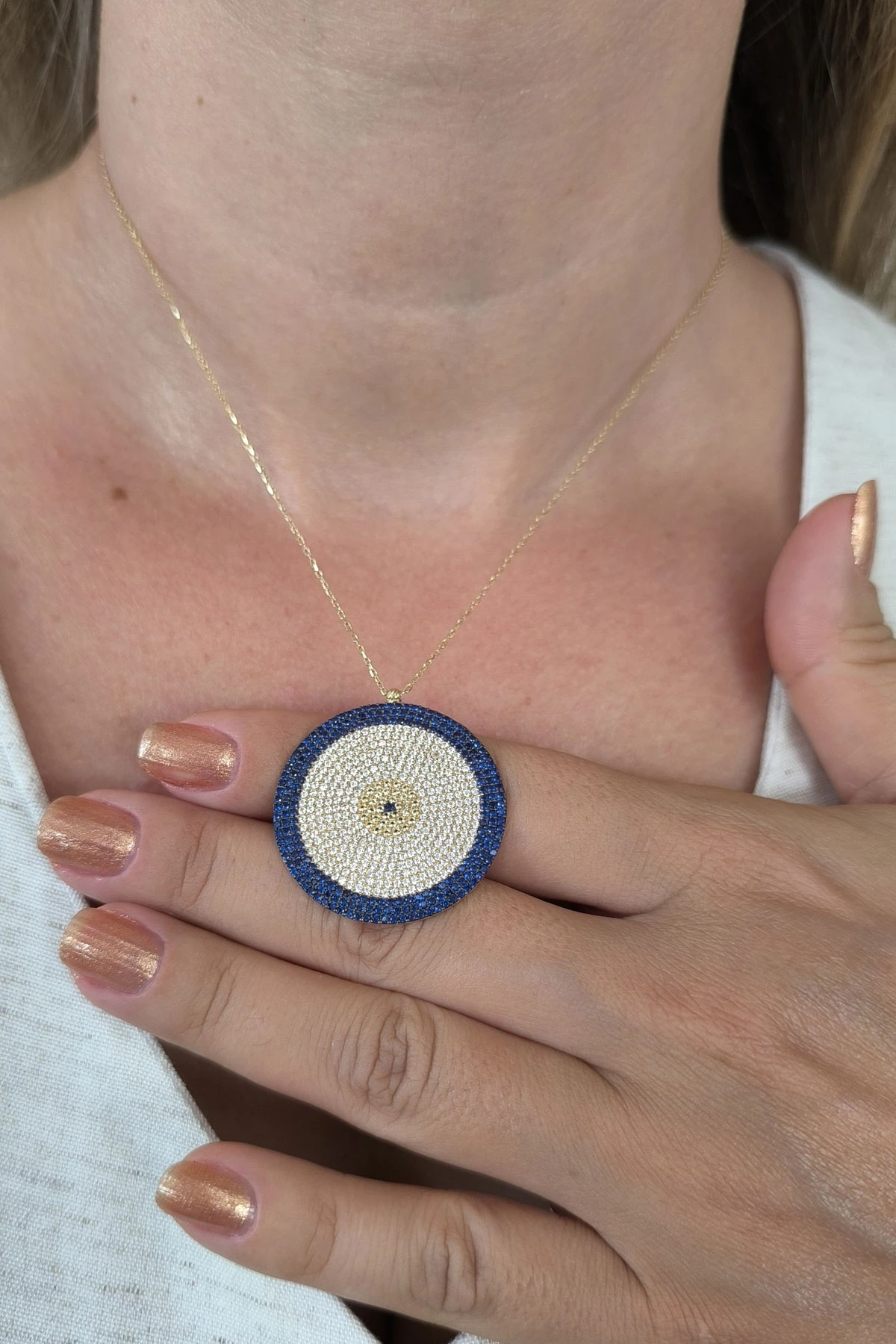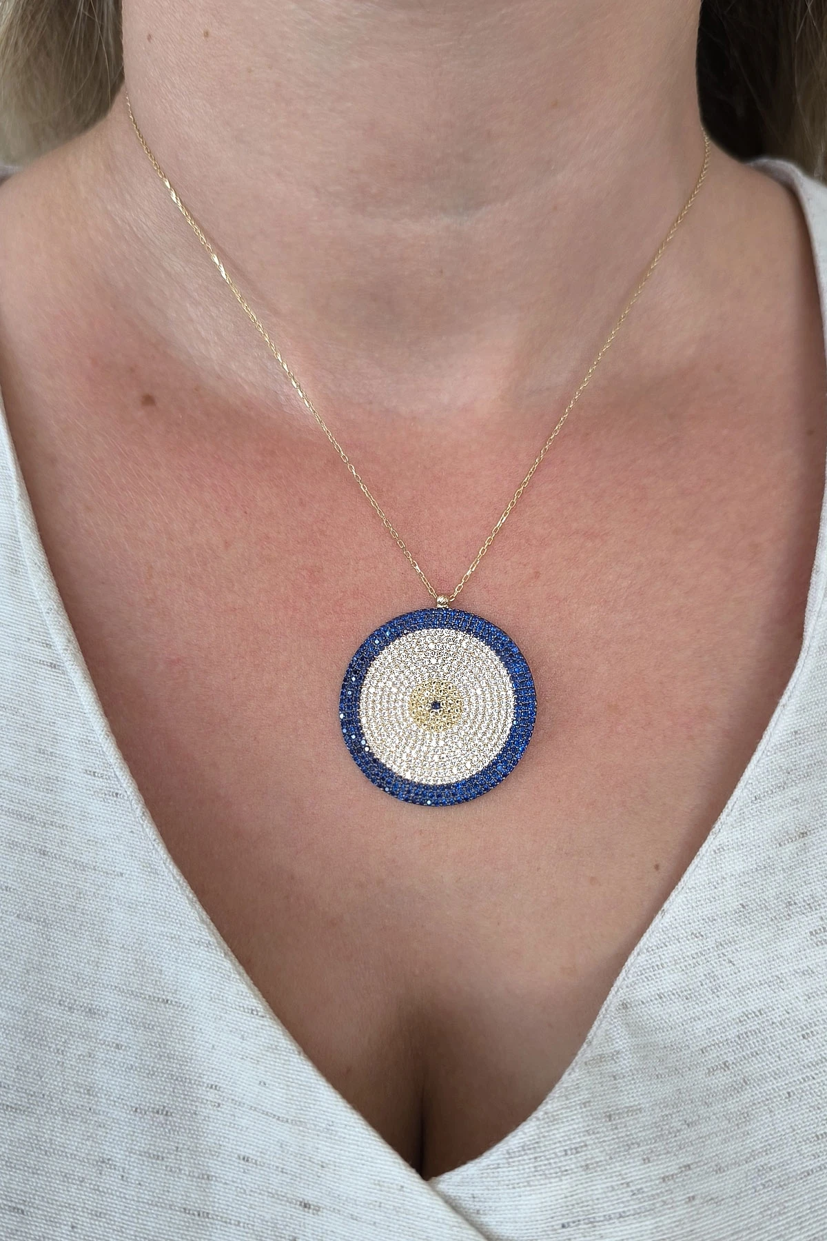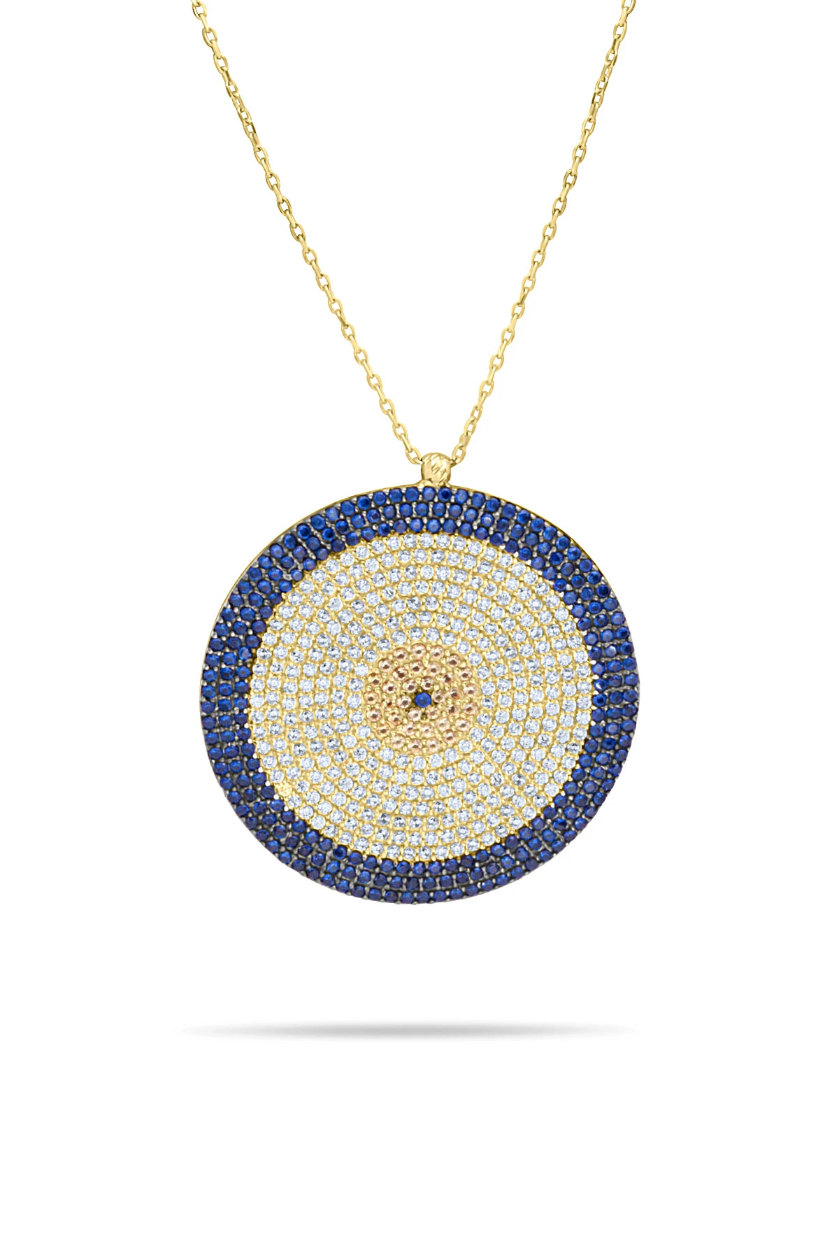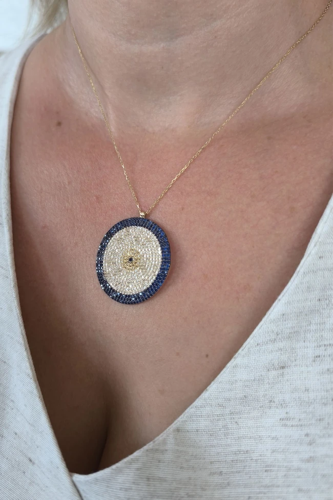 Gösterişli Şık Modeliyle 3.5 Cm Boyunda 9.00 Gr. Ağırlığında 14 Ayar Büyük Dev Boy Altın Nazar Boncuğu Kolye.