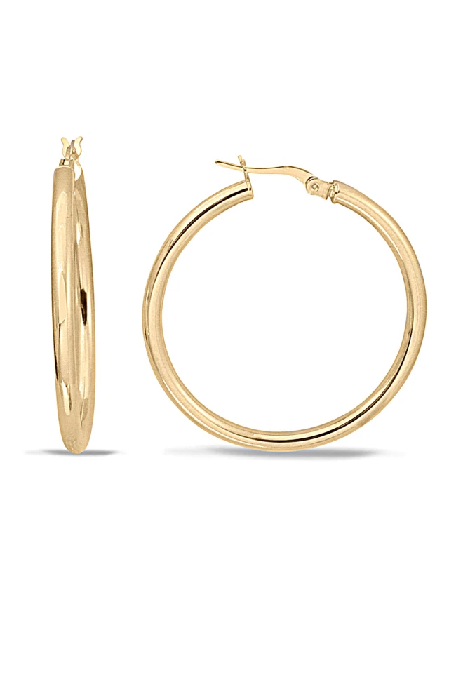 2.60 Gram Ağırlığında 14 Ayar Altın Spor ve Günlük Kullanıma Uygun Sezonun Geçmeyen Modası Düz Model 3.5 Cm 3 Mm Kalınlığında Halka Küpe.