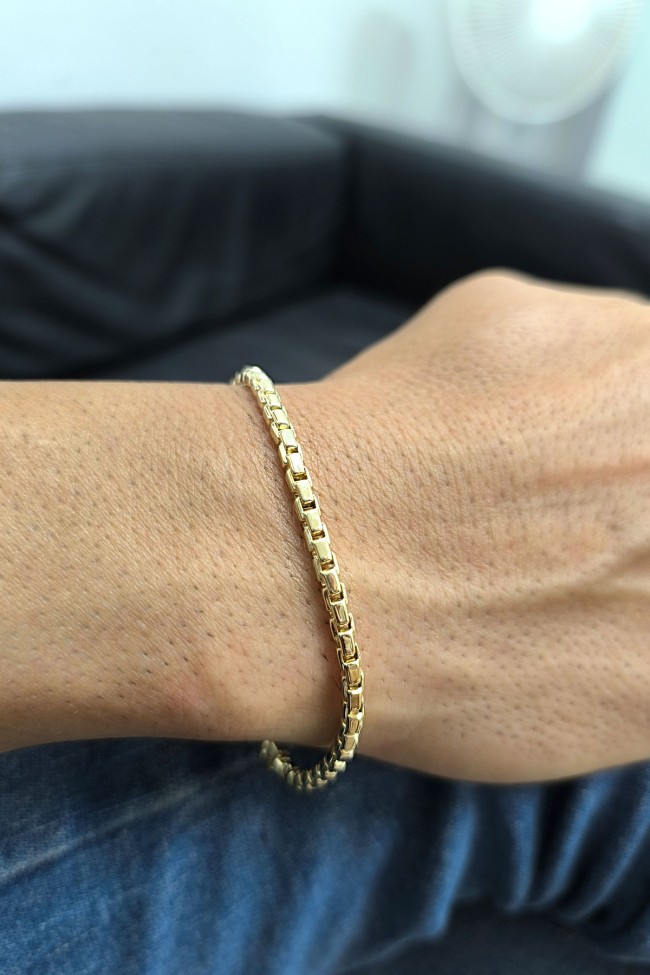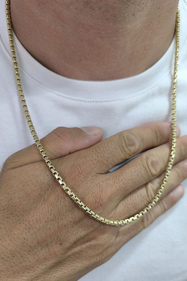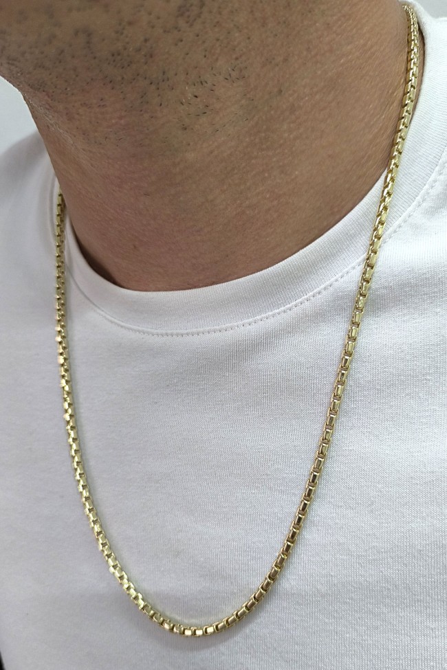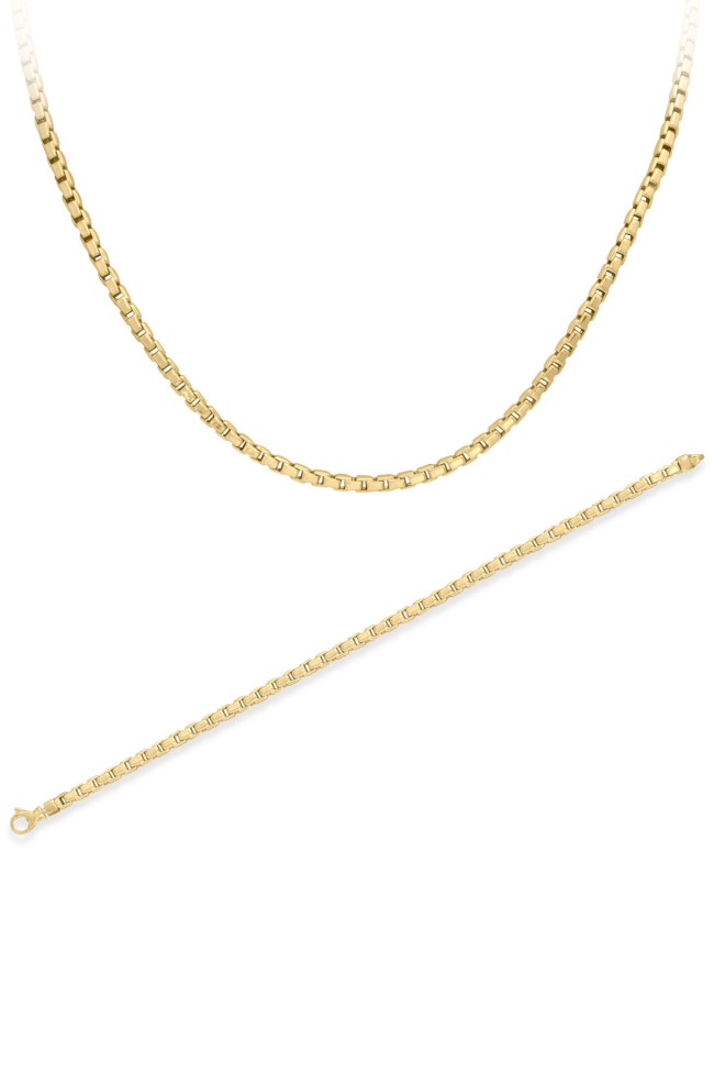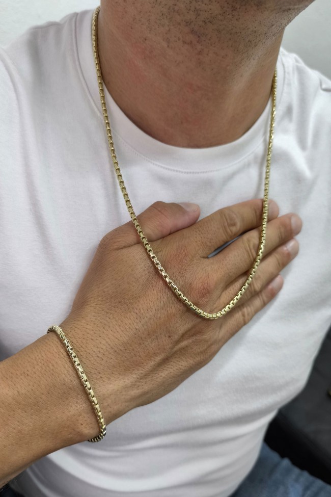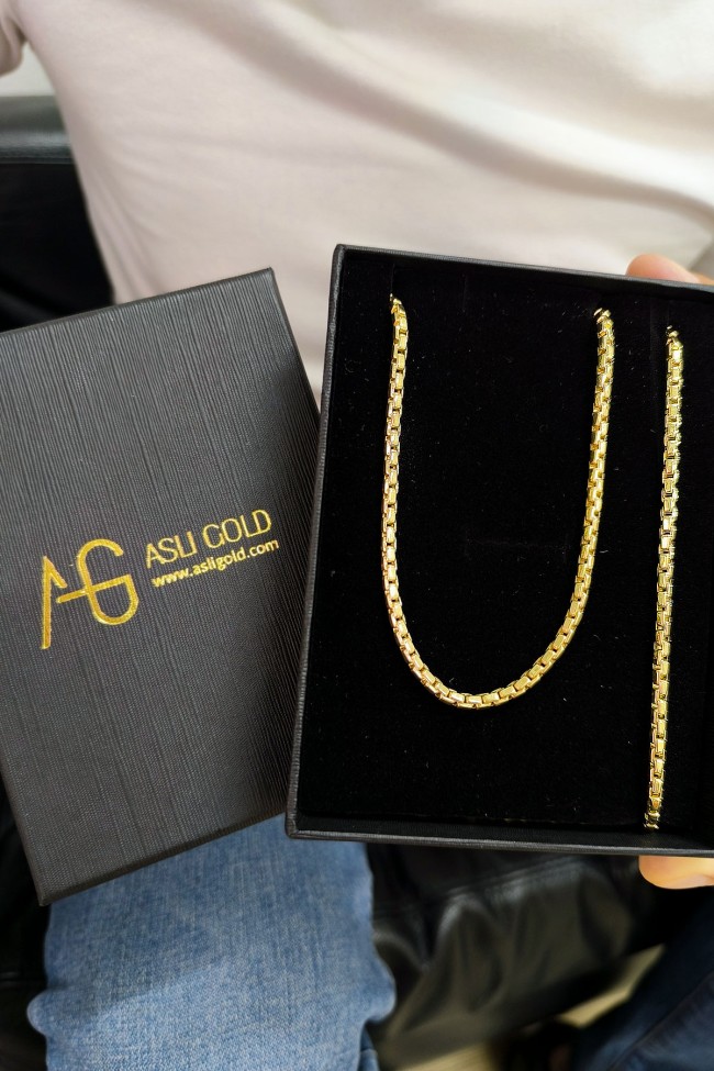 Modern Şehirli Tarz 20 Cm Boyunda Bileklik 65 Cm Boyunda Kolyesi Olan 3.5 Mm Eninde Traşlı Küp 24.50 Gr. Ağırlığında 14 Ayar Altın Erkek Bileklik Kolye Set.