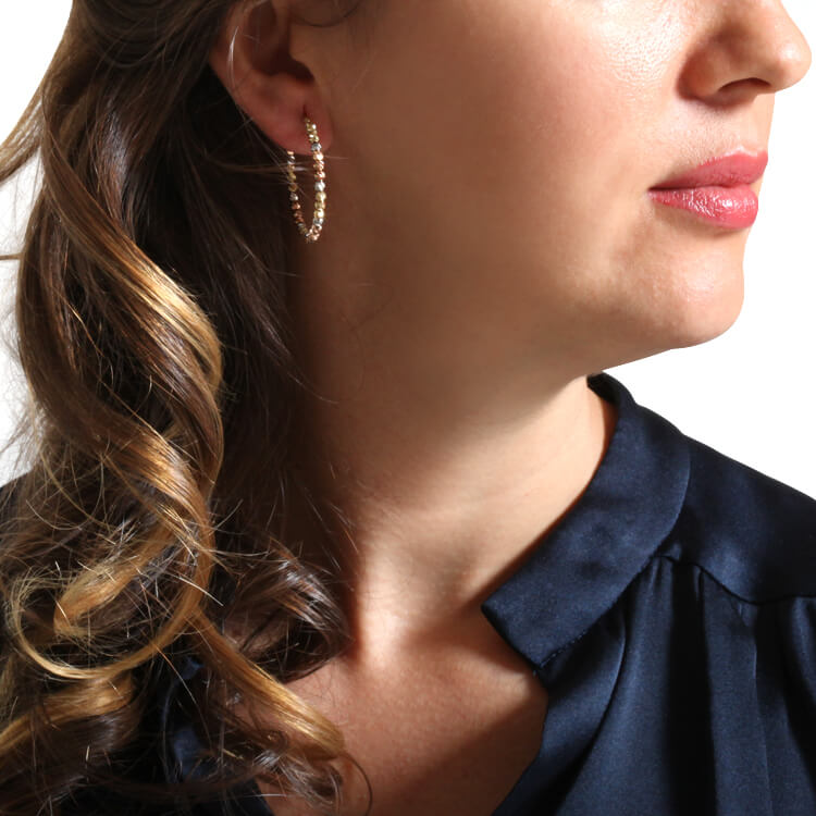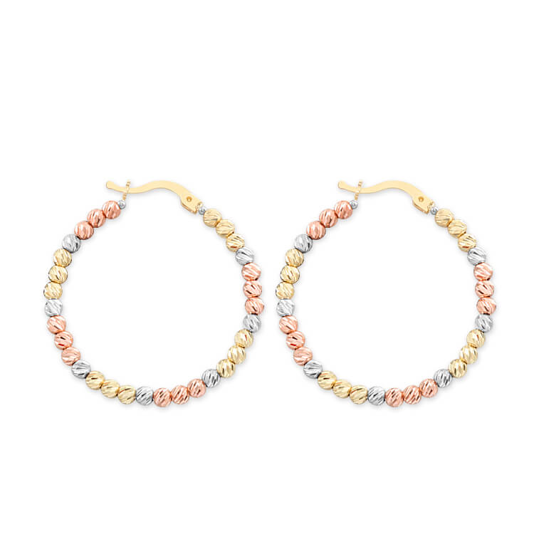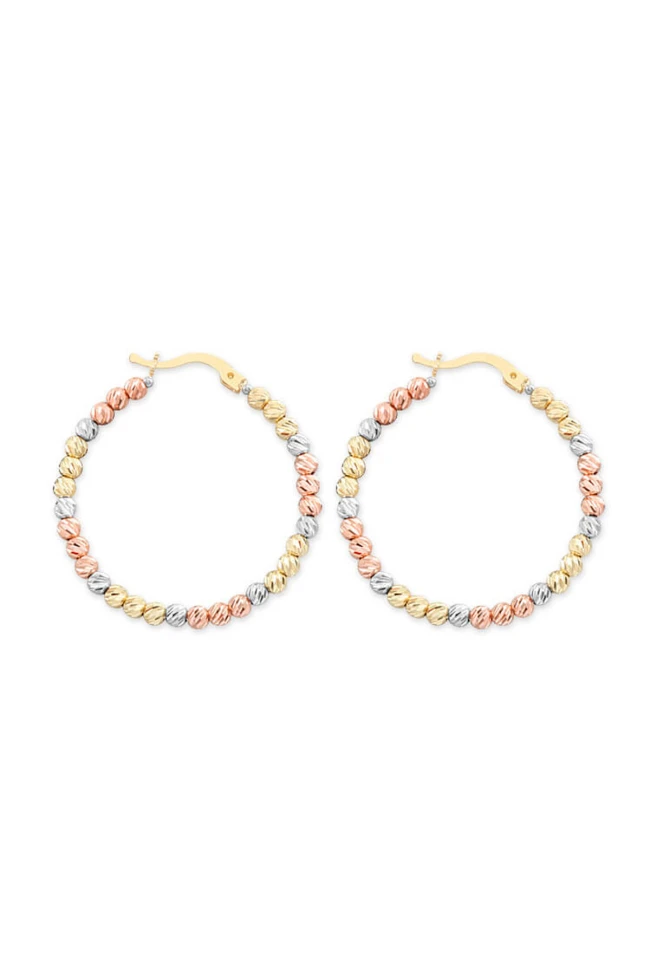 3.5 Cm Çapında Günlük Kullanımda Zarif Ve Gösterişli Duruşuyla Tarzınıza Işıltı Katacak Renkli Altın Kalemli 2.5 Mm Toplarla Tasarlanmış Tek Sıra 14 Ayar Altın Halka Küpe.