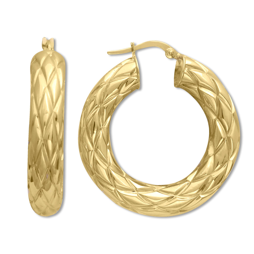 5.65 Gram Ağırlığında 3.7 Cm Boyunda Kapitone Kalın Bombe Detaylı 14 Ayar Altın Halka Spor Küpe.