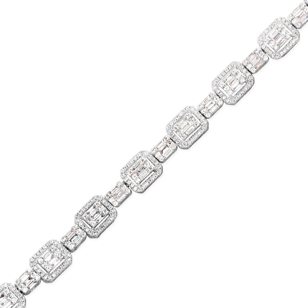 Sade ve zarif 18 ayar beyaz altın 3.95 G-VS2 baget ve yuvarlak kesim ışıl ışıl taşlarıyla ışıltısına her zaman hayran bırakan günlük olarak da kullanabileceğiniz pırlanta bileklik.