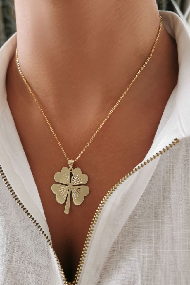 4.90 Gram Ağırlığında Özel Tasarım 4 CM Boyunda Trend Modeli İle Dikkatleri Üzerine Toplayan 14 Ayar Günlük ve Şık Bir Havaya Sahip Şans, Yaşam Yoncası Kolye Ucu.