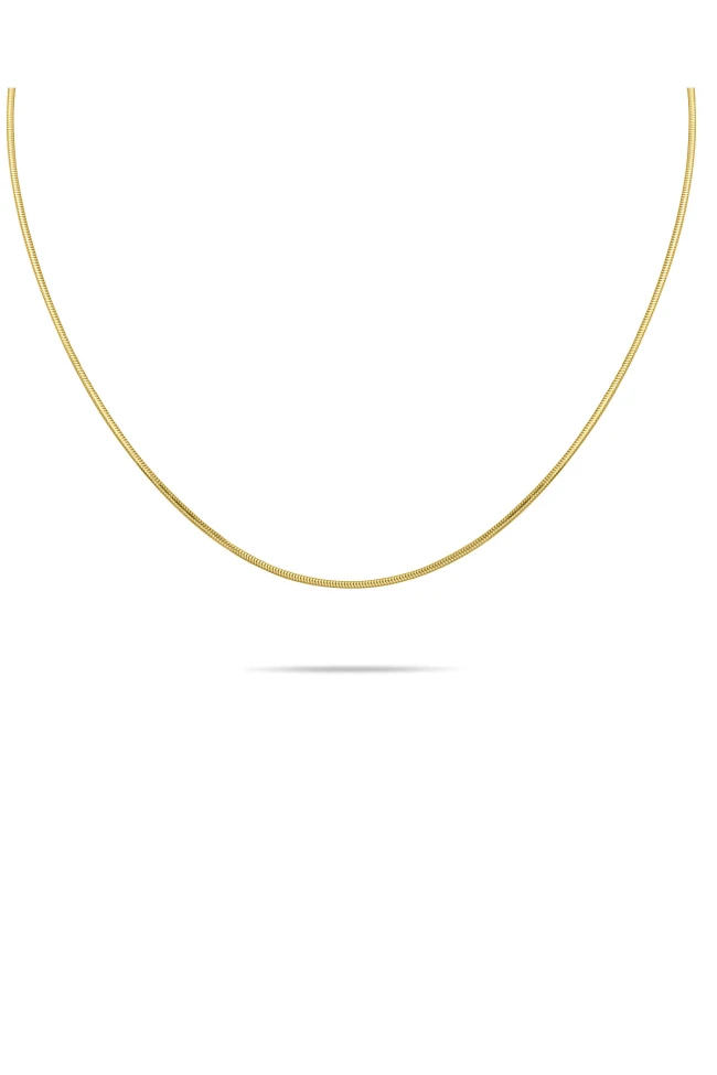 14 Ayar spor parlak tasarımı ile şık duruşa sahip ışıl ışıl günlük kullanıma uygun 4.40 gram ağırlığında 45 Cm uzunluğunda altın balık sırtı zincir kolye.