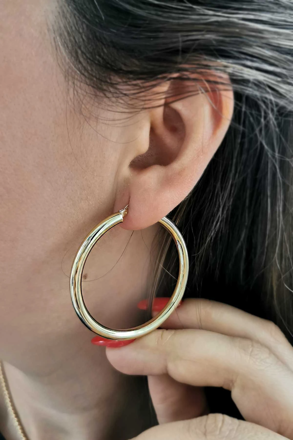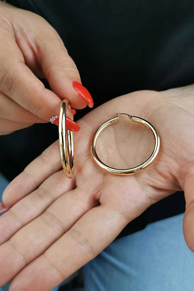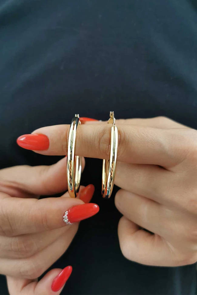 14 Ayar 5 Cm Boyunda 5.45 Gr Ağırlığında Sade, Spor Ve Dolgun Bir Duruşa Sahip, Günlük Kullanıma Uygun Altın Halka Küpe.