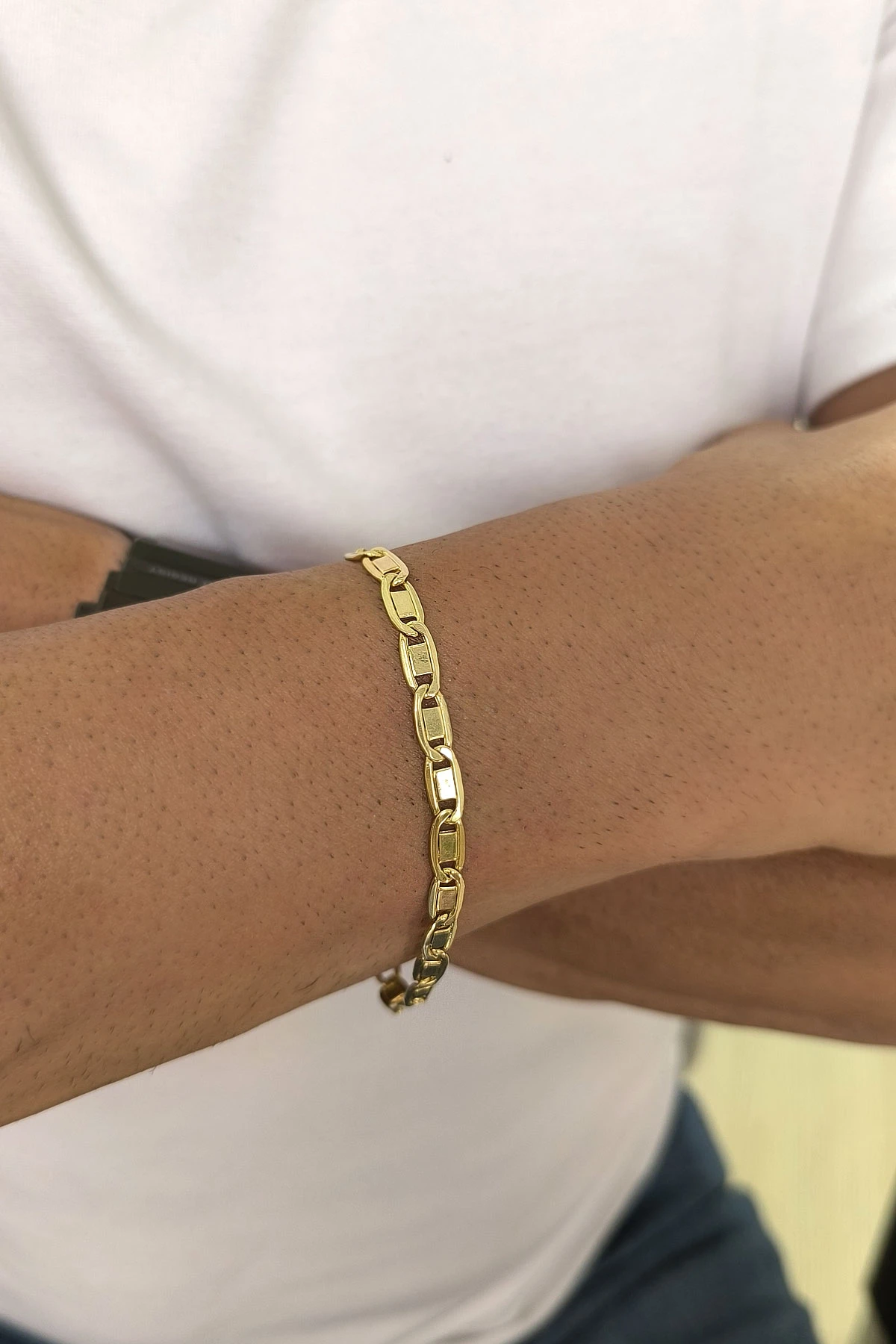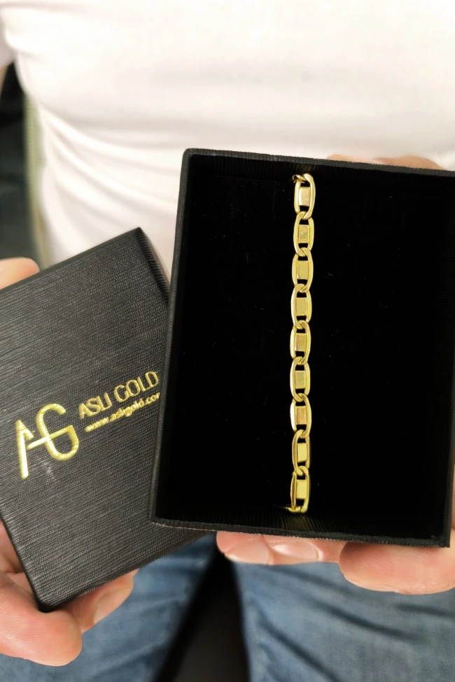 14 Ayar Altın Modern Tüm Gün Giyim Kombinlerinize Eşlik Edecek Ve Tarz Katacak Harika Bir Modele Sahip 5.10 Gr 20 Cm Boyunda 5 Mm Genişliğinde Altın Valentino Unisex Erkek Bileklik.